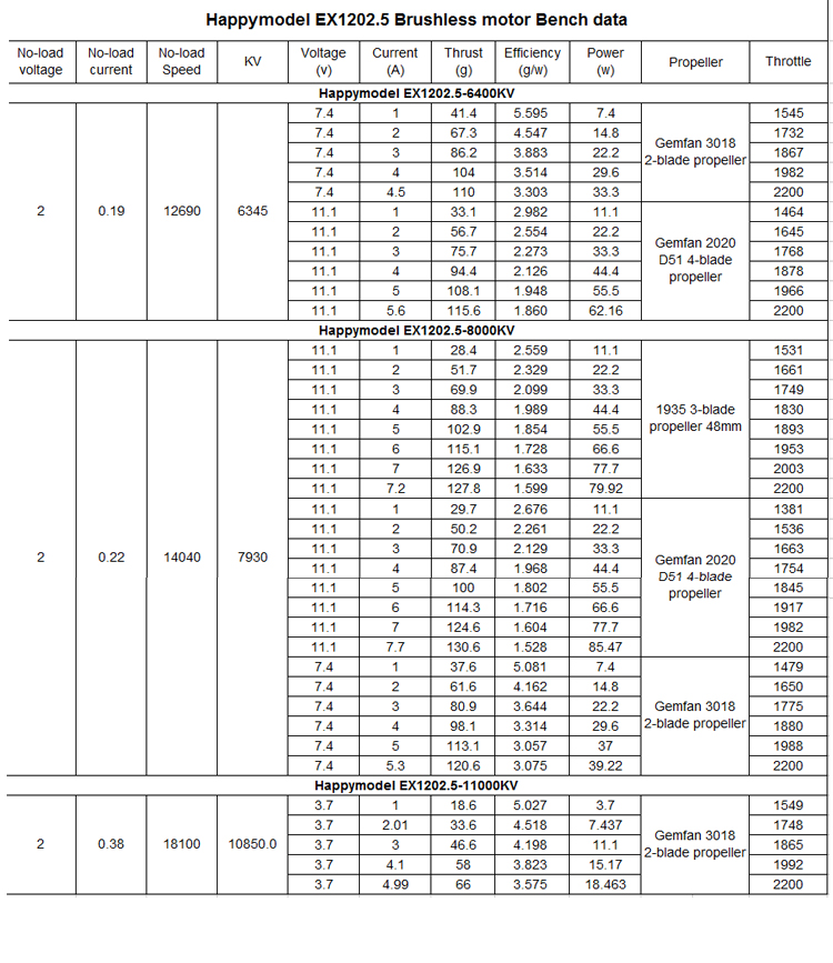 Happymodel's latest EX1202.5 (EX12025) brushless motor weighs only 4.4 grams, with imported double bearings for NMB. It is efficient, durable and smooth. Excellent power choice for 2.5" or 3" advanced Micro FPV racing drones.
