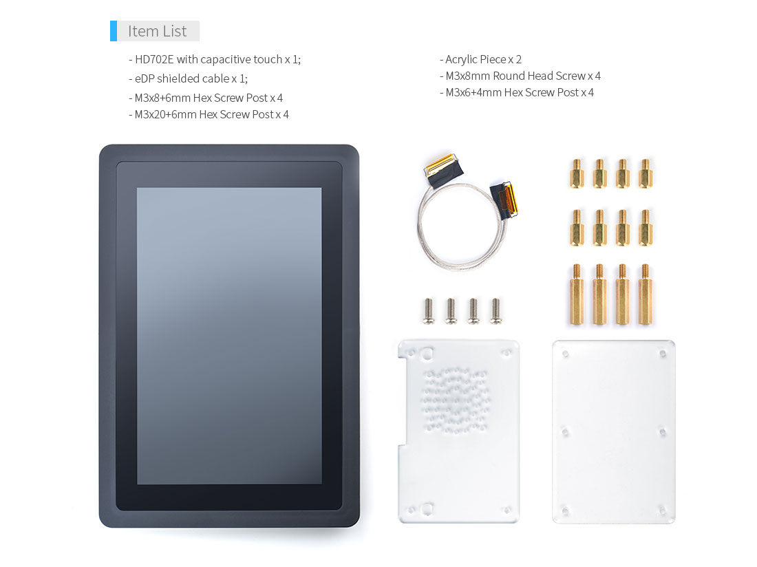 HD702E 7" EDP HD Capacitive Touch Screen 800x1280 Display + Cable + Acrylic Shell For NanoPC-T4