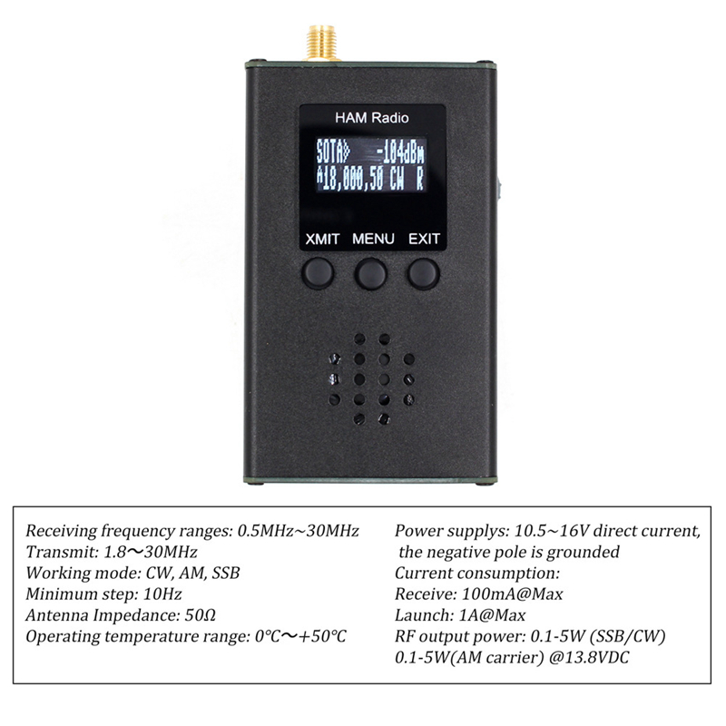 - Frequency Range: Receiving: 0.5MHz~30MHz (theoretically can reach the limit of SI5351); Transmission: 1.8~30MHz