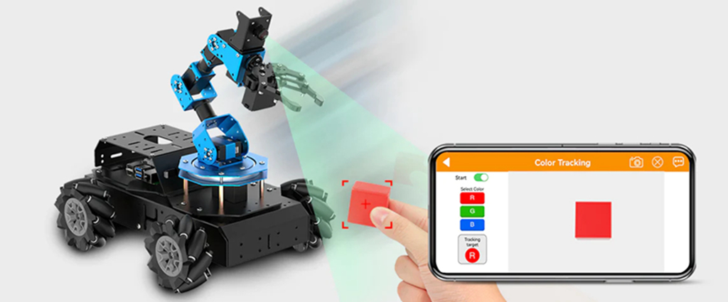 With abundant tutorials and open source Python codes, robotic arm can carry out color recognition, picking and sorting.