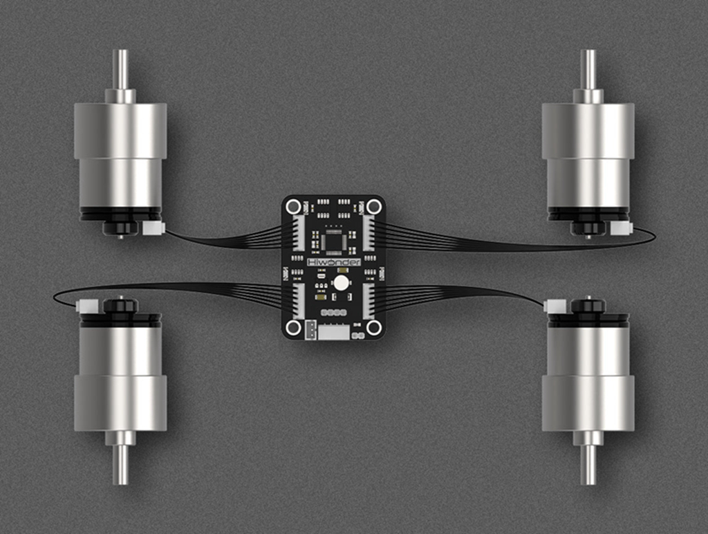 Encoder motor with large reduction rate can offer accurate calculation of wheel speed and travel distance. 4-channel encoder motor driver contributes to easier motor control.