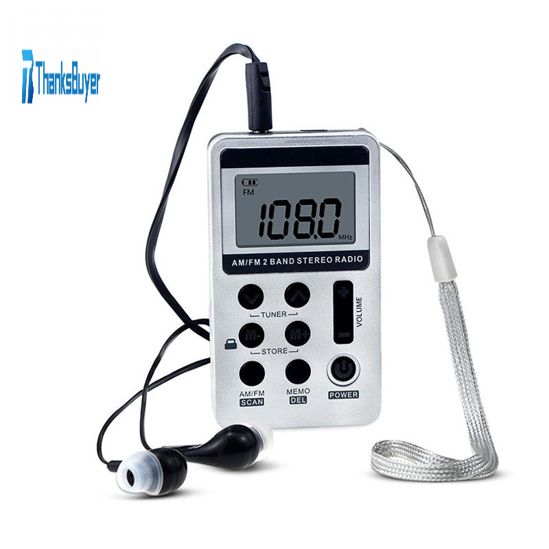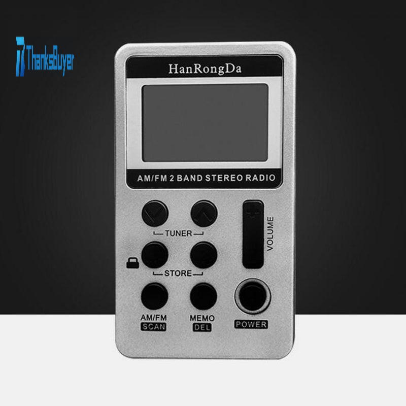 HRD-103 AM FM Radio Mini Radio Portable Pocket Radio Rechargeable USB Port LCD Display Silver Gray