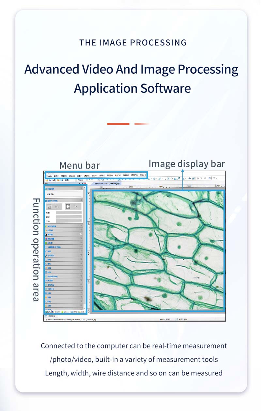 - Eyepiece interface (adapter), designed for the microscope. The under mouth is the 23.2mm, 30mm and 30.5mm straight inserted, can be installed directly in the biological or stereo eyepiece camera. Catches still images and live video on your computer. The user-friendly software for Windows offers advanced features including Stitching, EDF (Extended Depth of Focus) and video recording. Live video and still image catch can be set in different resolutions simultaneously.