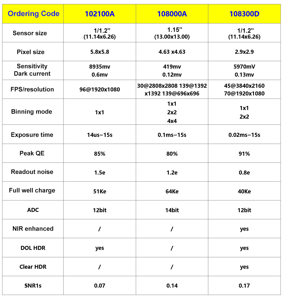 - The front of the camera sensor is equipped with a high-quality IR-cut filter (the filter is not attached to the models with NIR mark by default)