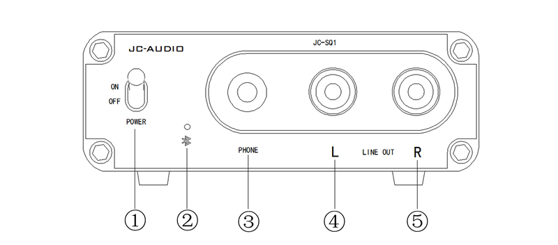 ⑦ Coaxial Signal Interface: Can be used for signal input or output. When Bluetooth is not connected, it is in coaxial signal input mode. At this time, JC-SQ1 can be used as a coaxial signal decoder. When Bluetooth connection is enabled, this interface automatically switches to coaxial signal output mode, which can be connected to a more advanced decoder to decode Bluetooth audio signals. Your mobile phone or tablet PC becomes a Bluetooth digital turntable.