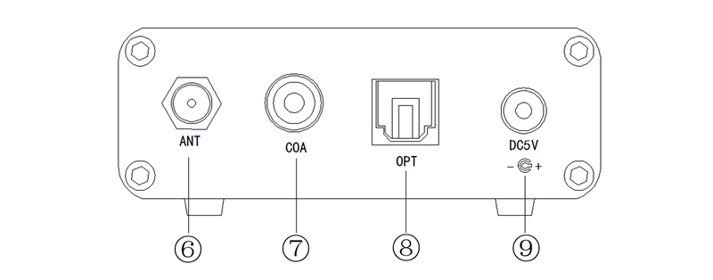 ⑧ Optical Fiber Signal Interface: Bluetooth SPDIF signal output, which can be directly connected to a decoder to decode Bluetooth audio signals. There is a customized optical input version, please contact customer service for specific operations.