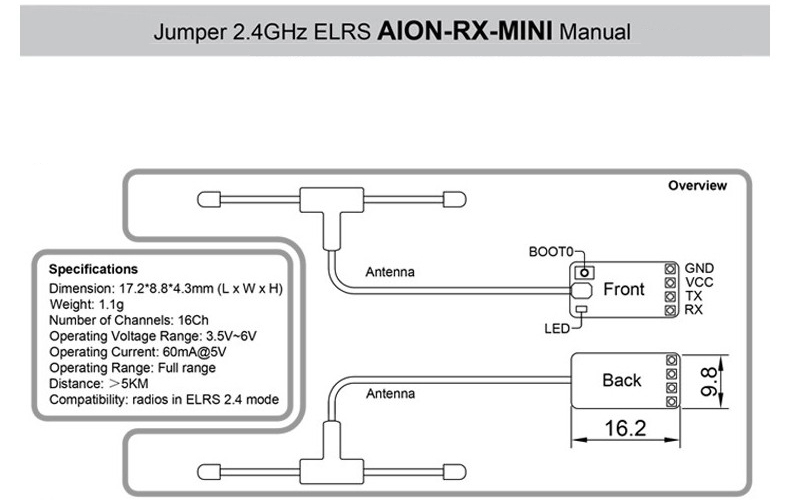 JUMPER T-PRO 2.4GHz ELRS Receiver 16CH RC Receiver RX Open Source AION-RX-MINI for RC Drone