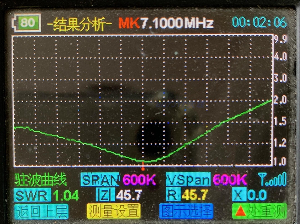 - Configuration: 2.5 square 40m wire, 20m rope, 1:64 Balun