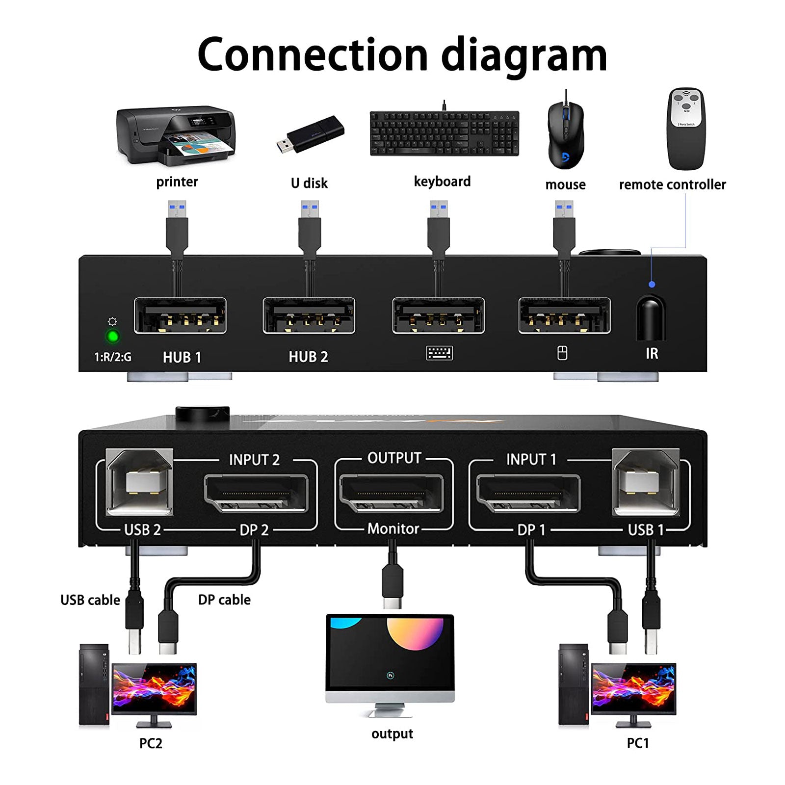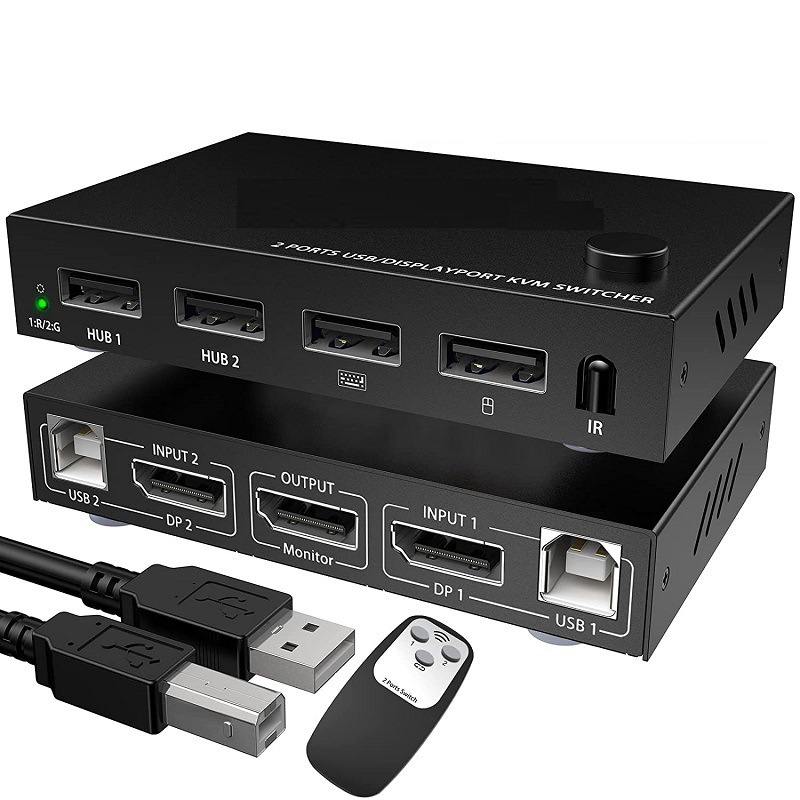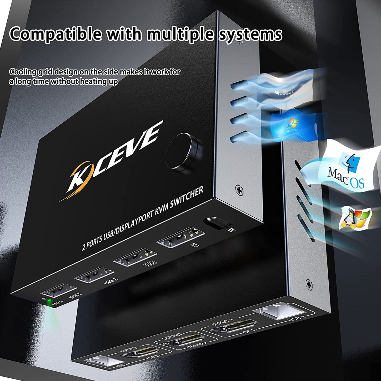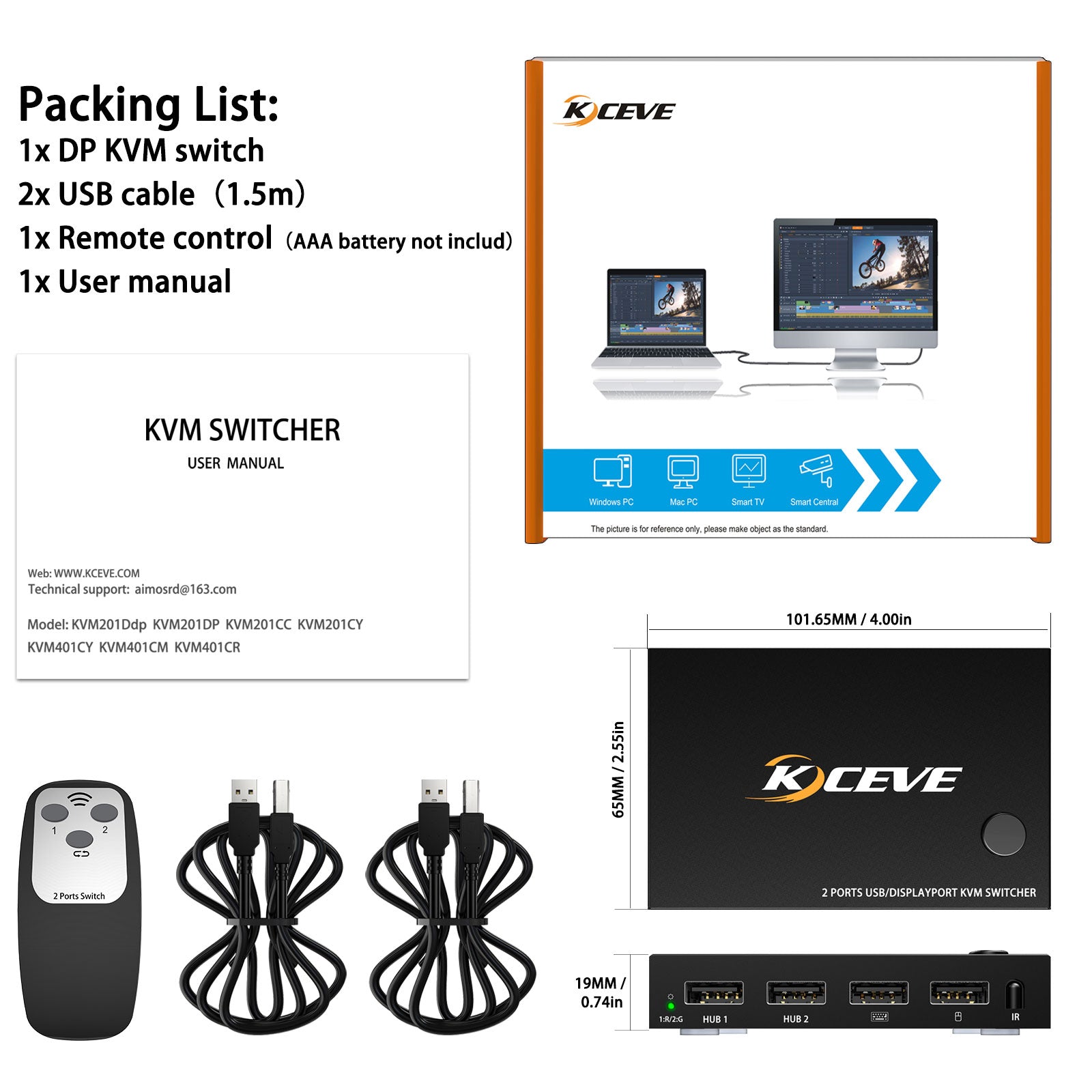 KC-201DDP 4K 60HZ DP KVM Switch 2 Ports USB/Displayport KVM Switch 2 IN 1 OUT [DP + DP] Input