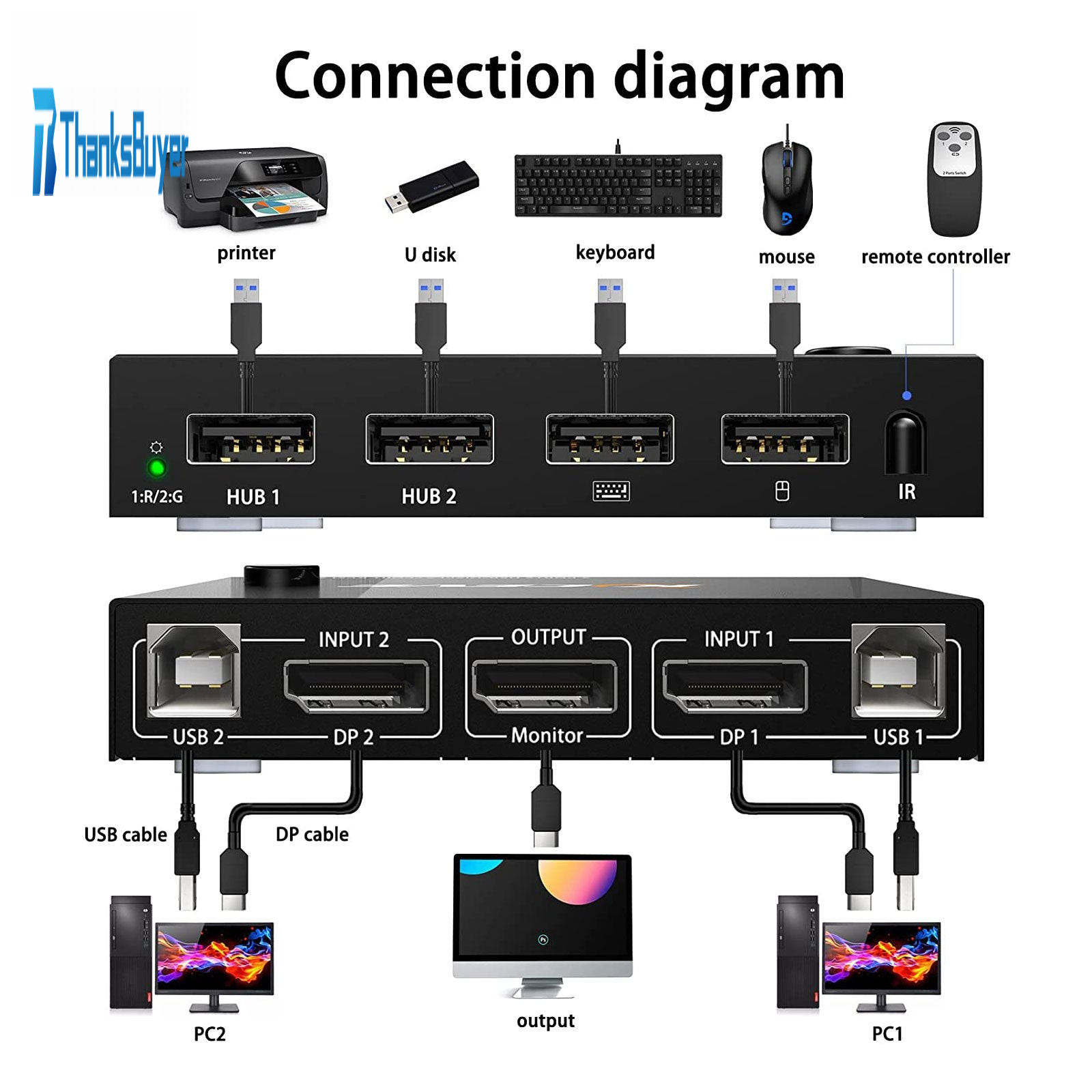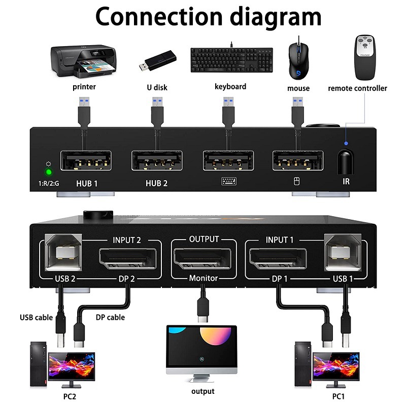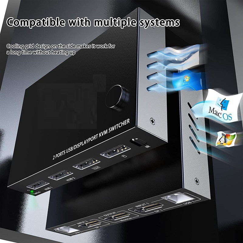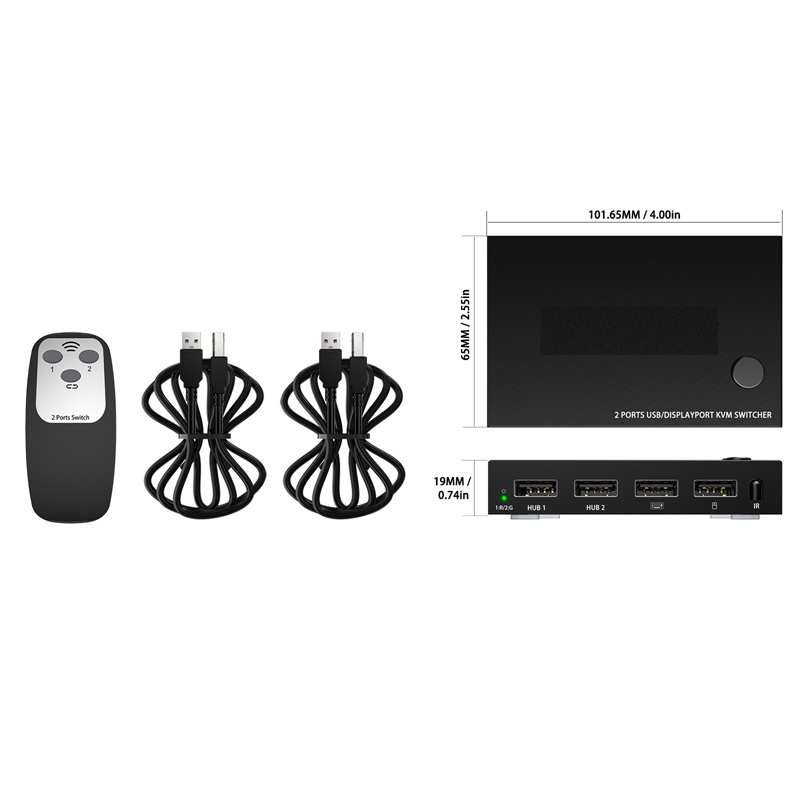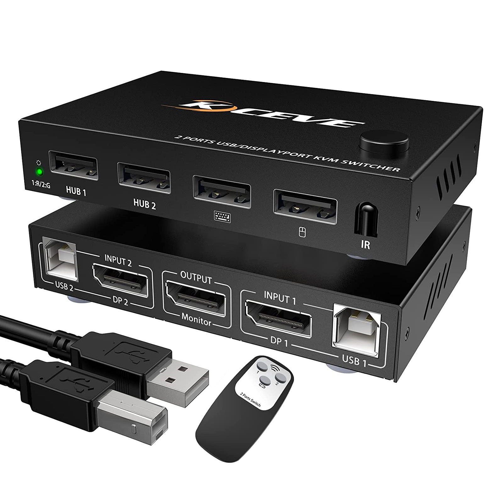 KC-201DDP 4K 60HZ DP KVM Switch 2 Ports USB/Displayport KVM Switch 2 IN 1 OUT [DP + DP] Input