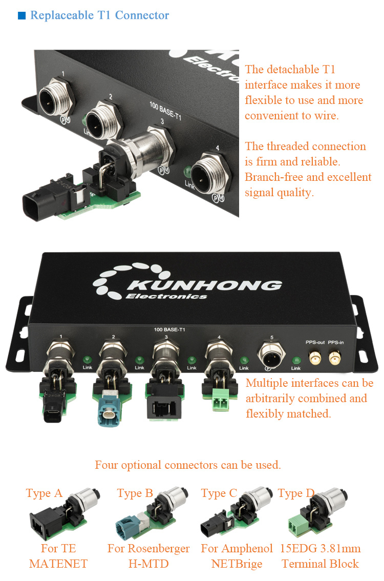 - Replaceable T1 connectors: The detachable T1 interface makes it more flexible to use and more convenient to wire. The threaded connection is firm and reliable. Branch-free and excellent signal quality.
