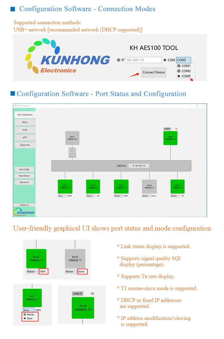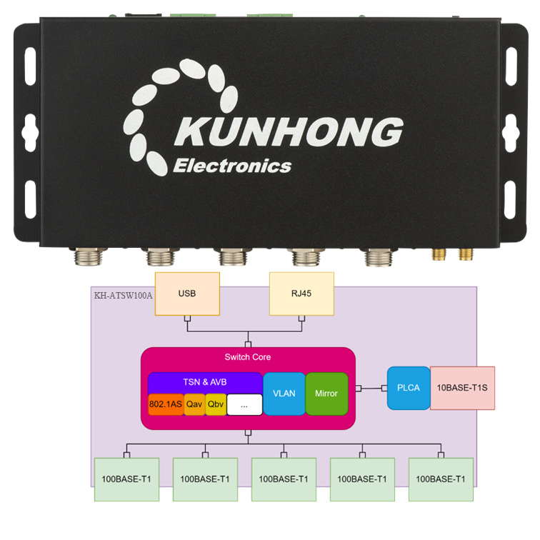 KUNHONG KH-ATSW1100A 8-Port TSN AVB Automotive Ethernet Switch + 5pcs Connectors for TE MATENET