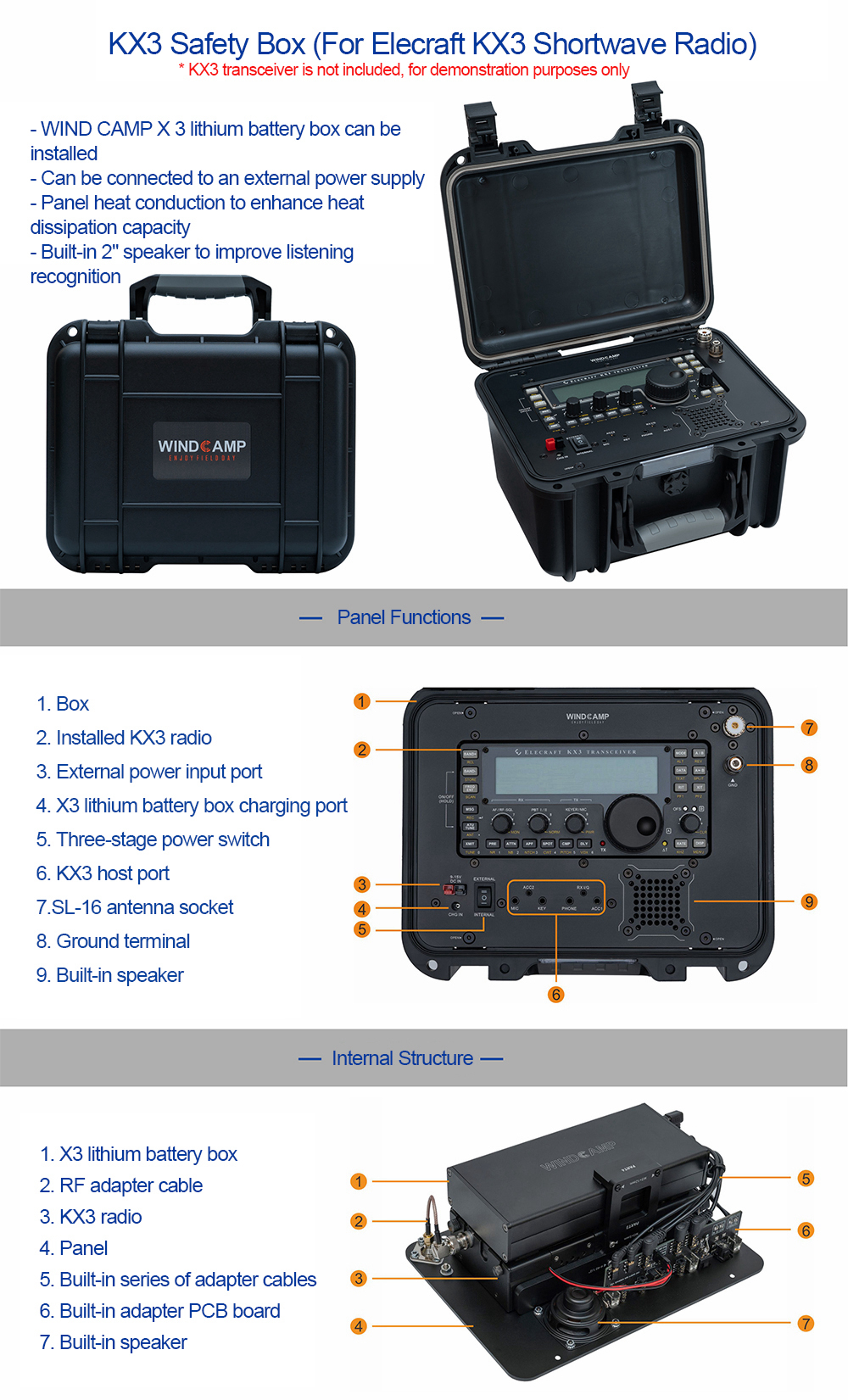- 1 x Set of KX3 Safety Box Radio Box + X3 Lithium Battery Box