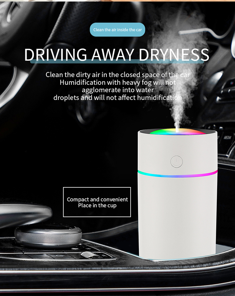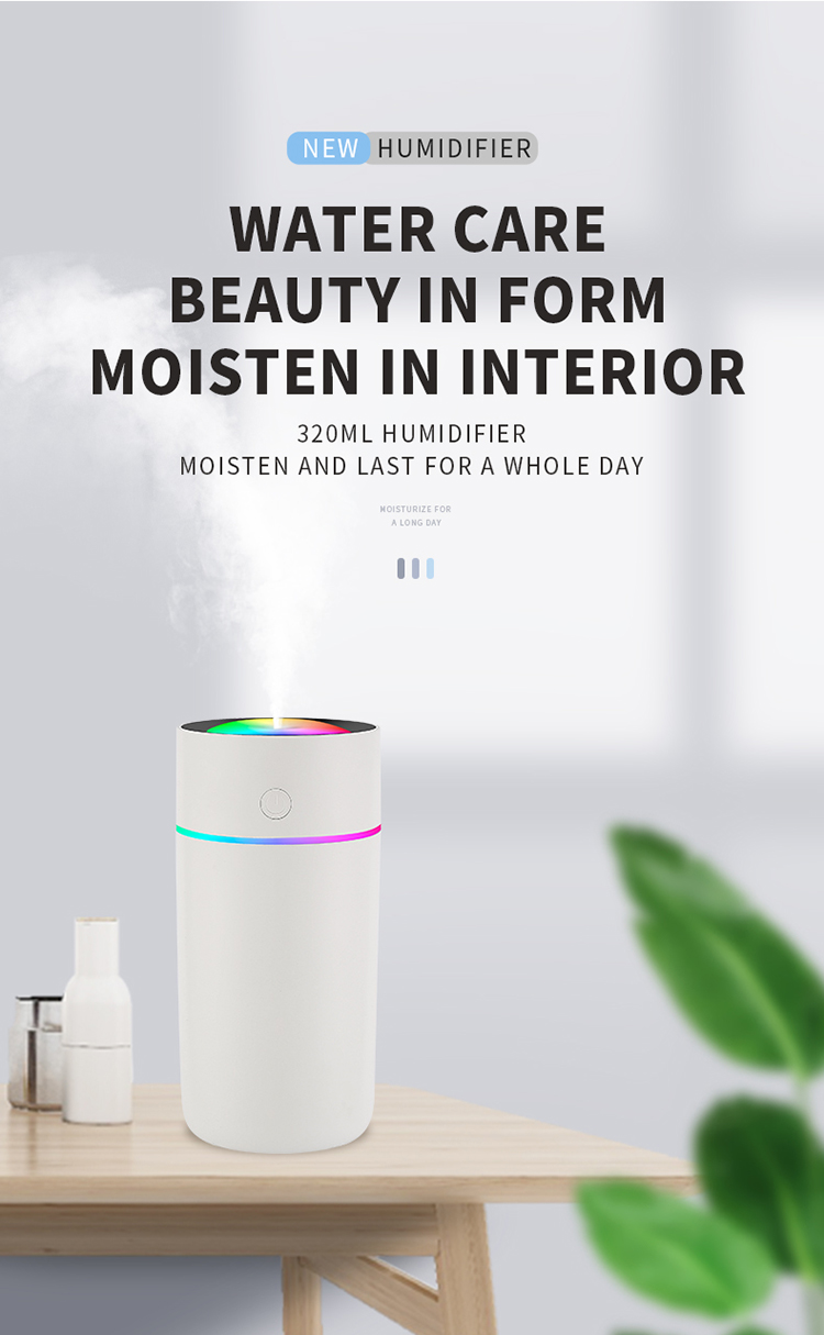 L05X 320ML Portable Air Humidifier Diffuser Mute Operation w/ Colorful Night Light For Home Vehicles