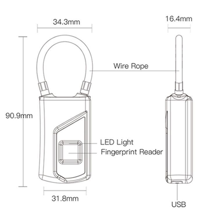 - Fingerprint setting: short press to unlock, long press 5s to set fingerprint, long press 10s to delete fingerprint