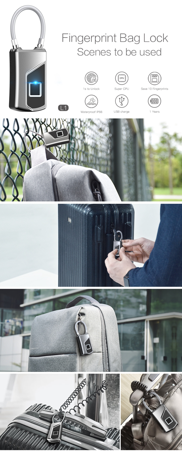 L1 Fingerprint Lock Multifunctional Smart Lock Keyless IP66 Waterproof Anti-theft Suitcase Padlock