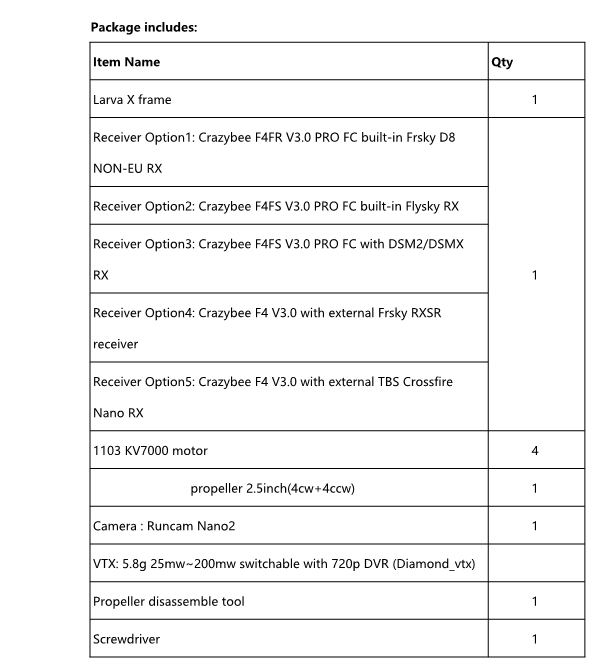 - Item Name: Larva X 2-3S 2.5inch Brushless FPV drone