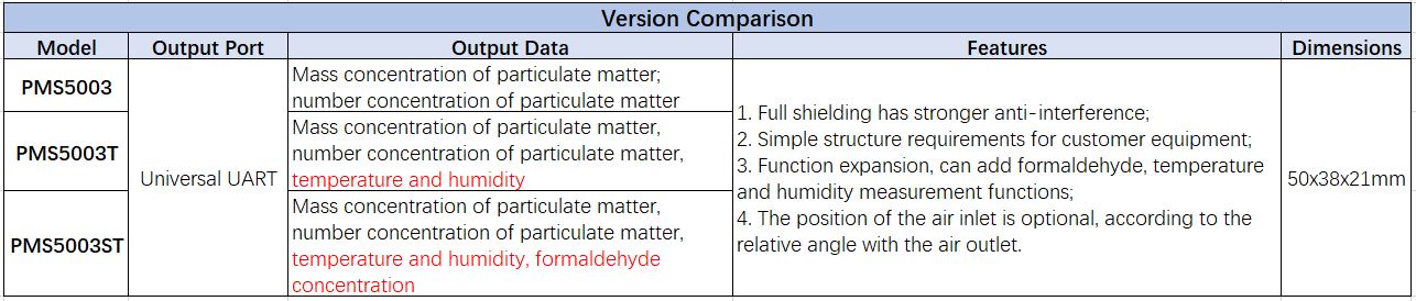 - PM2.5, formaldehyde, temperature and humidity integrated sensor