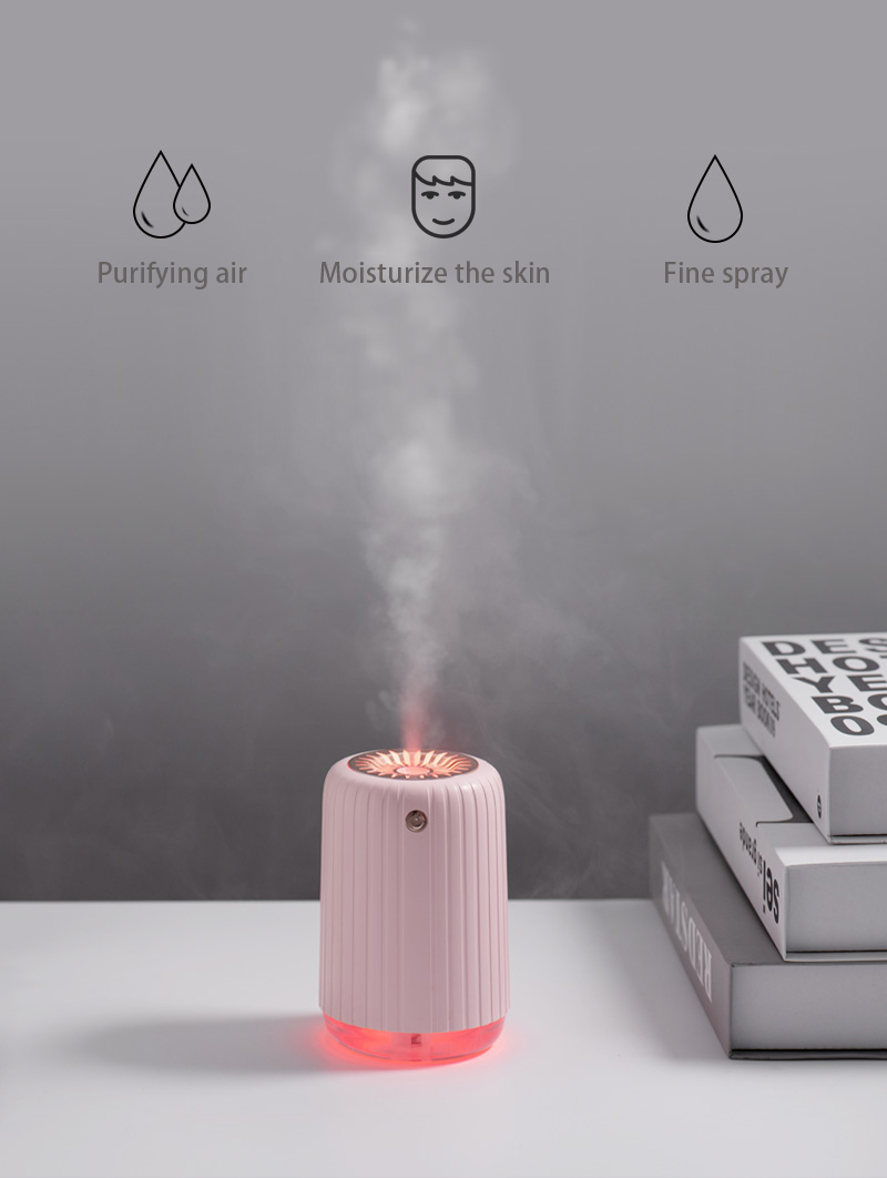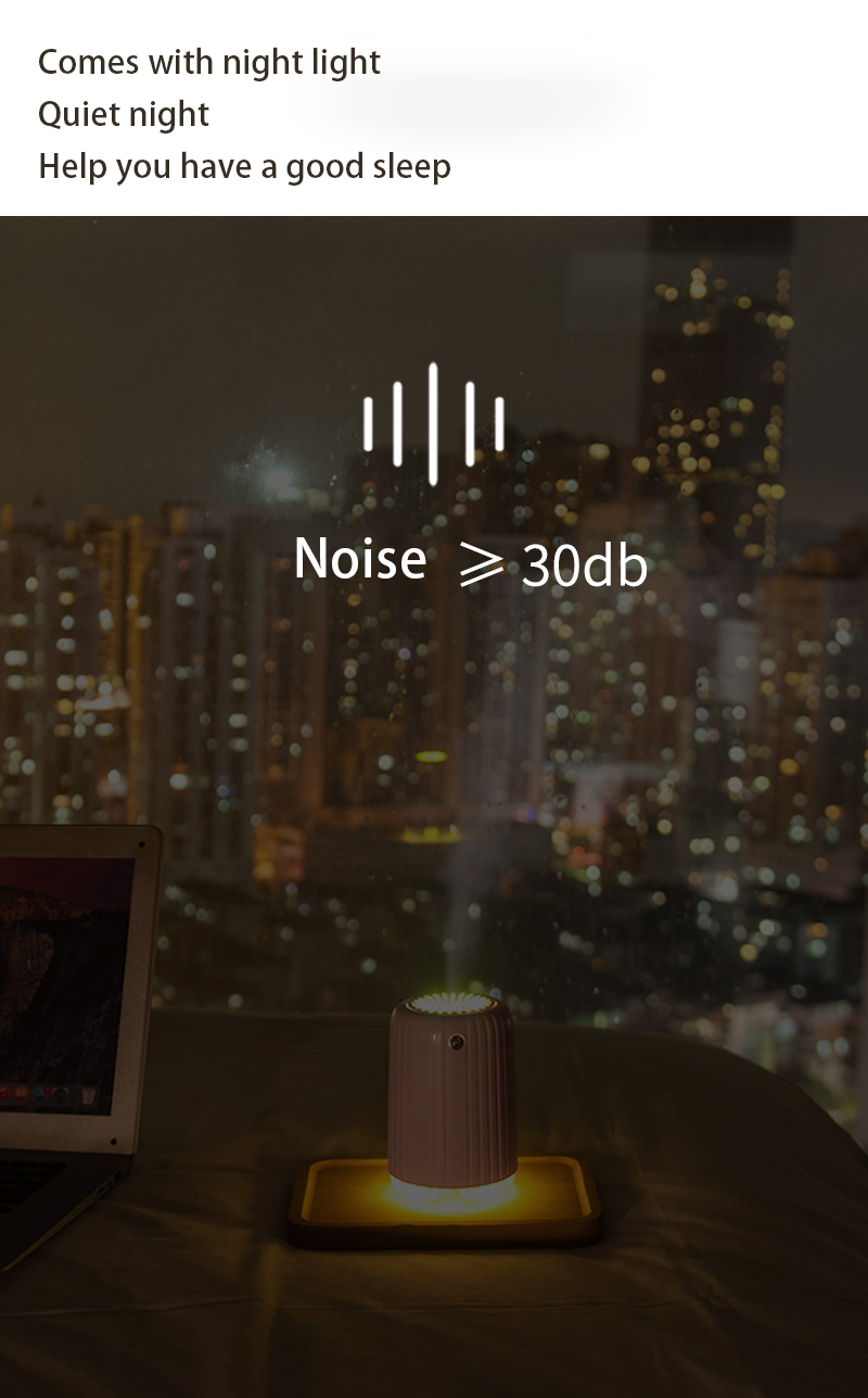 - The mini air humidifier with night light. Replenish water and help you sleep better. Silent humidification, running decibel ≥30db, moisturizing the skin