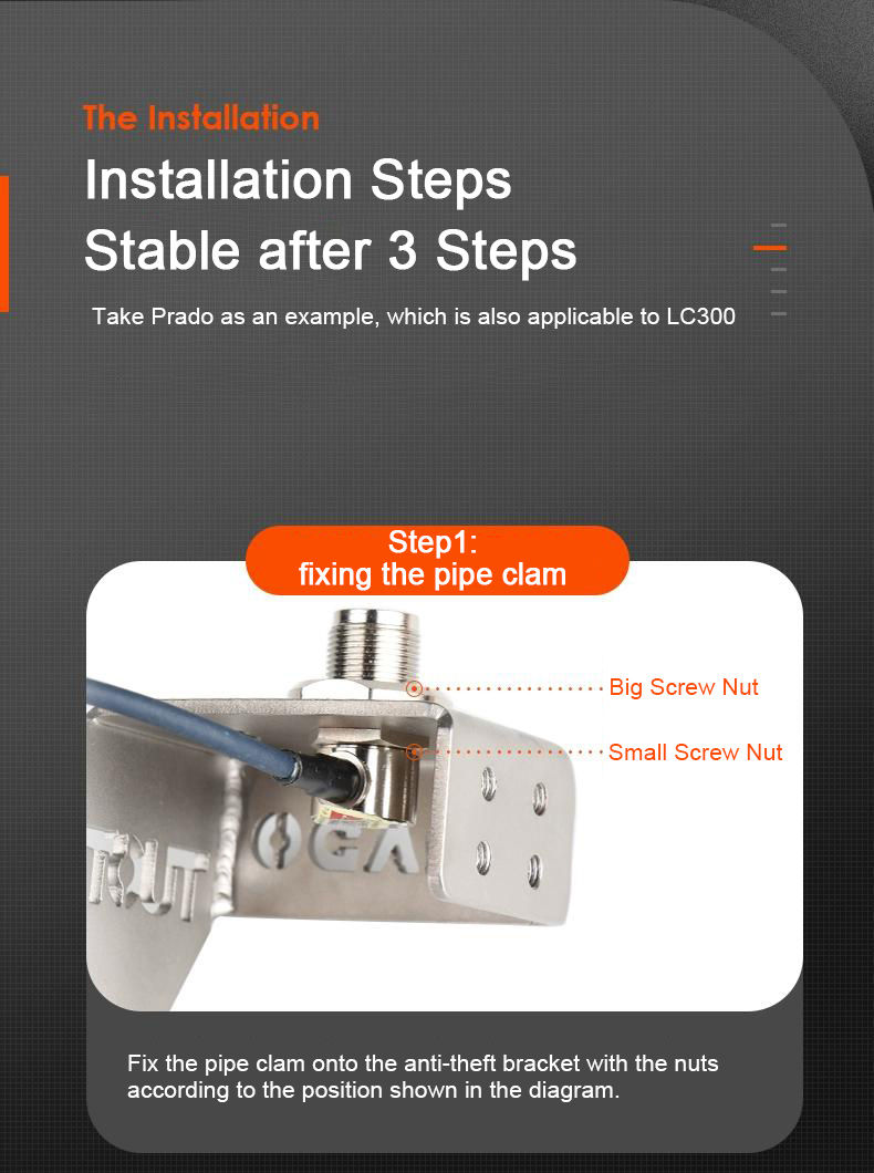 LC300 Dedicated Antenna Mounting Bracket Anti-theft 304 Stainless Steel Antenna Holder for TOYOTA LC300