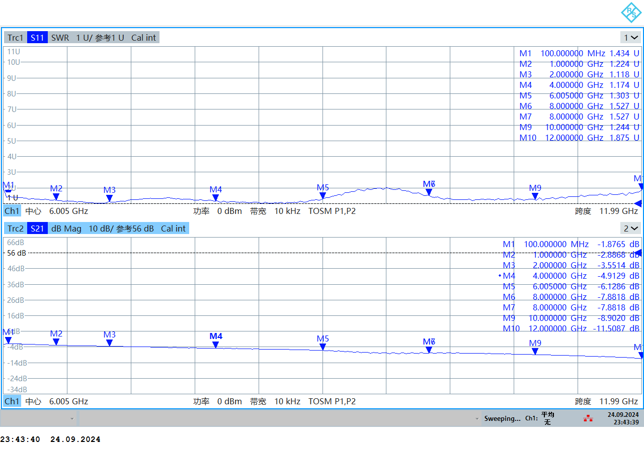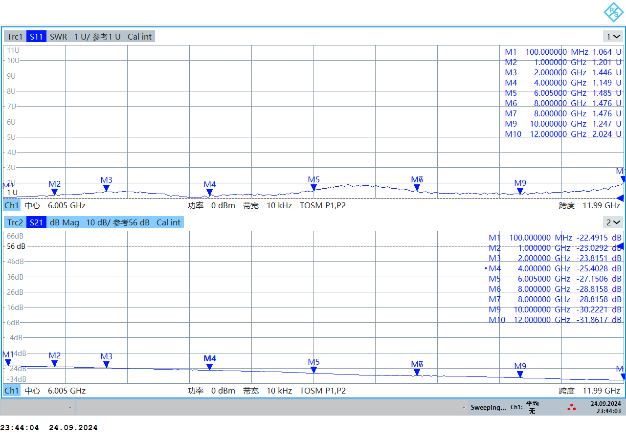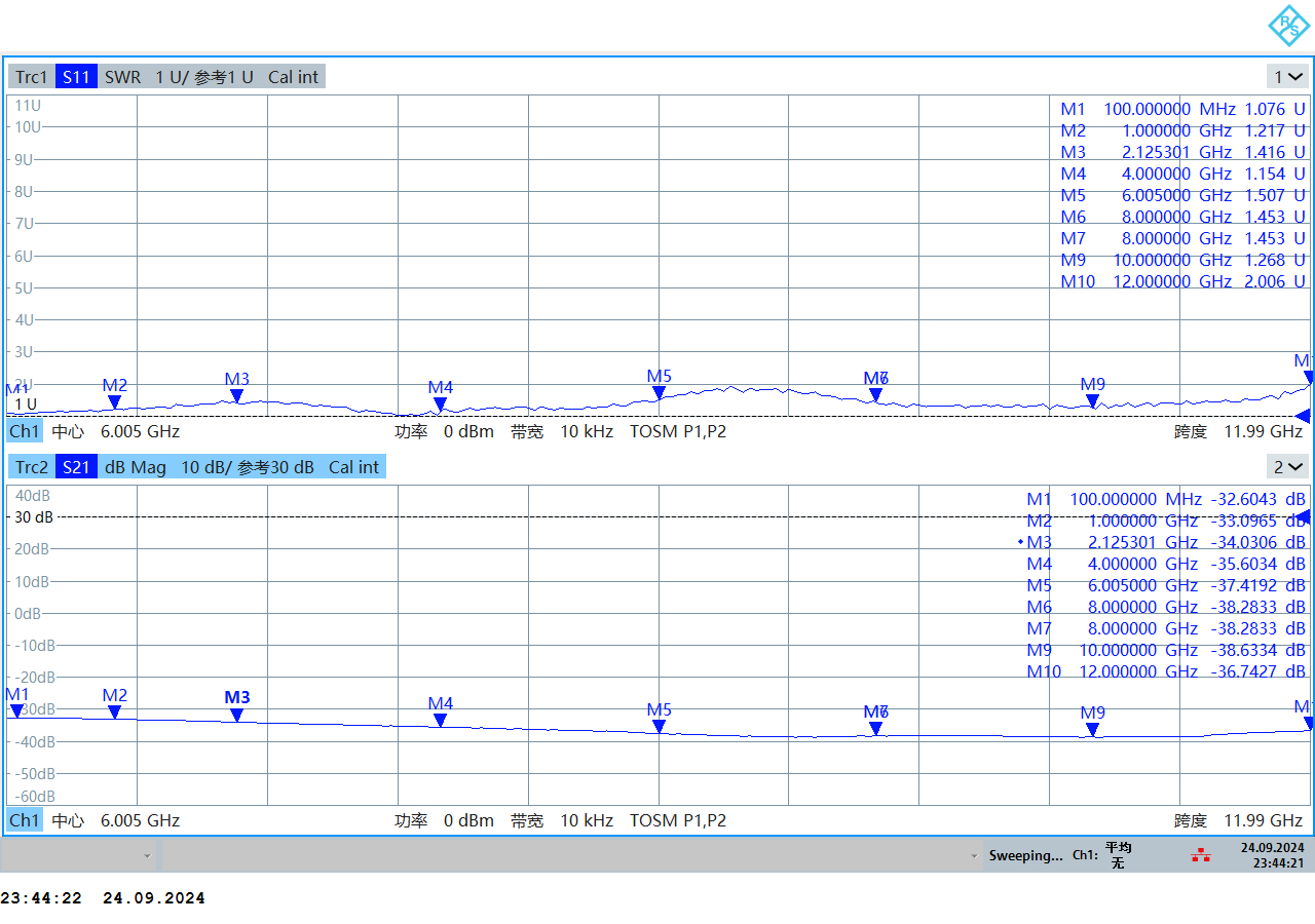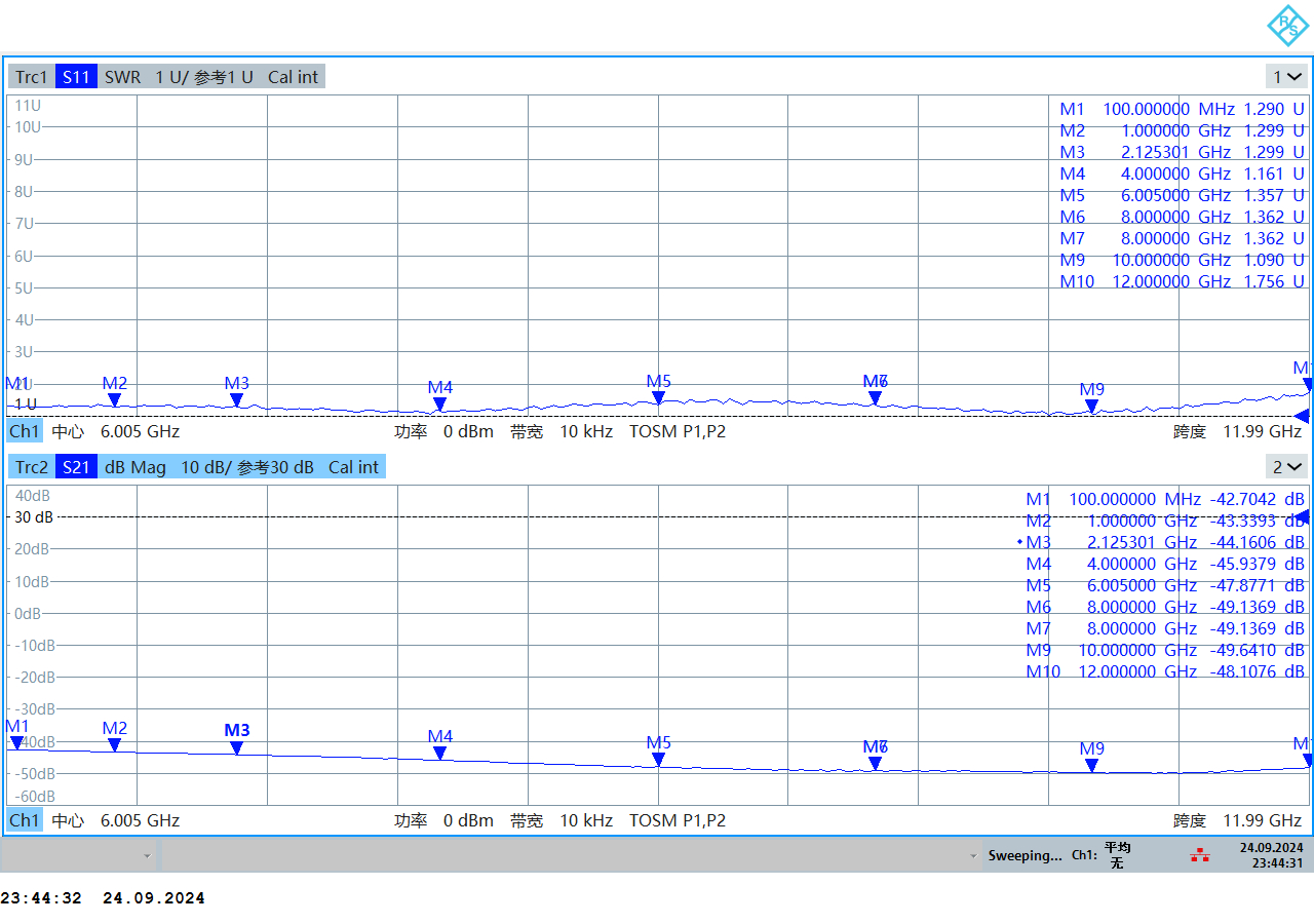 7. Insertion loss: refer to the 0DB attenuator to set the S-curve