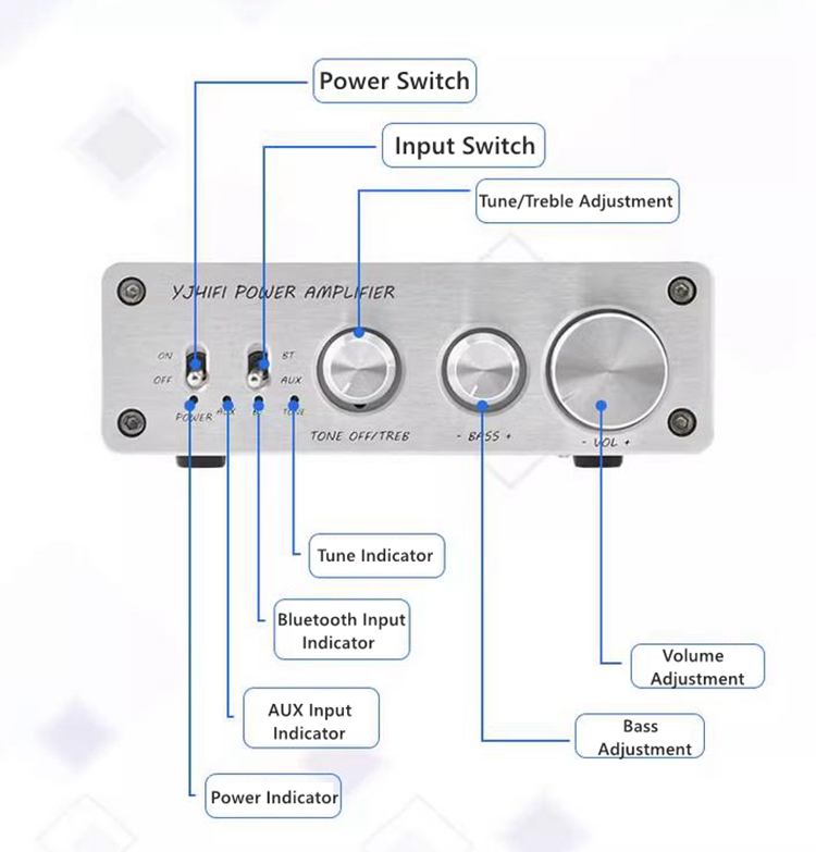 - Built-in TPA3255 high power digital power amplifier chip with maximum power of 315W/4ohm per channel.