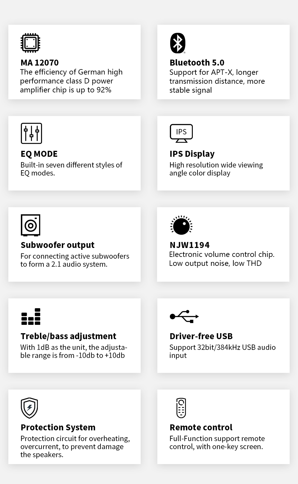 - Bluetooth module. Mature Bluetooth receiving solution, support for Bluetooth 5.0, apt-X.