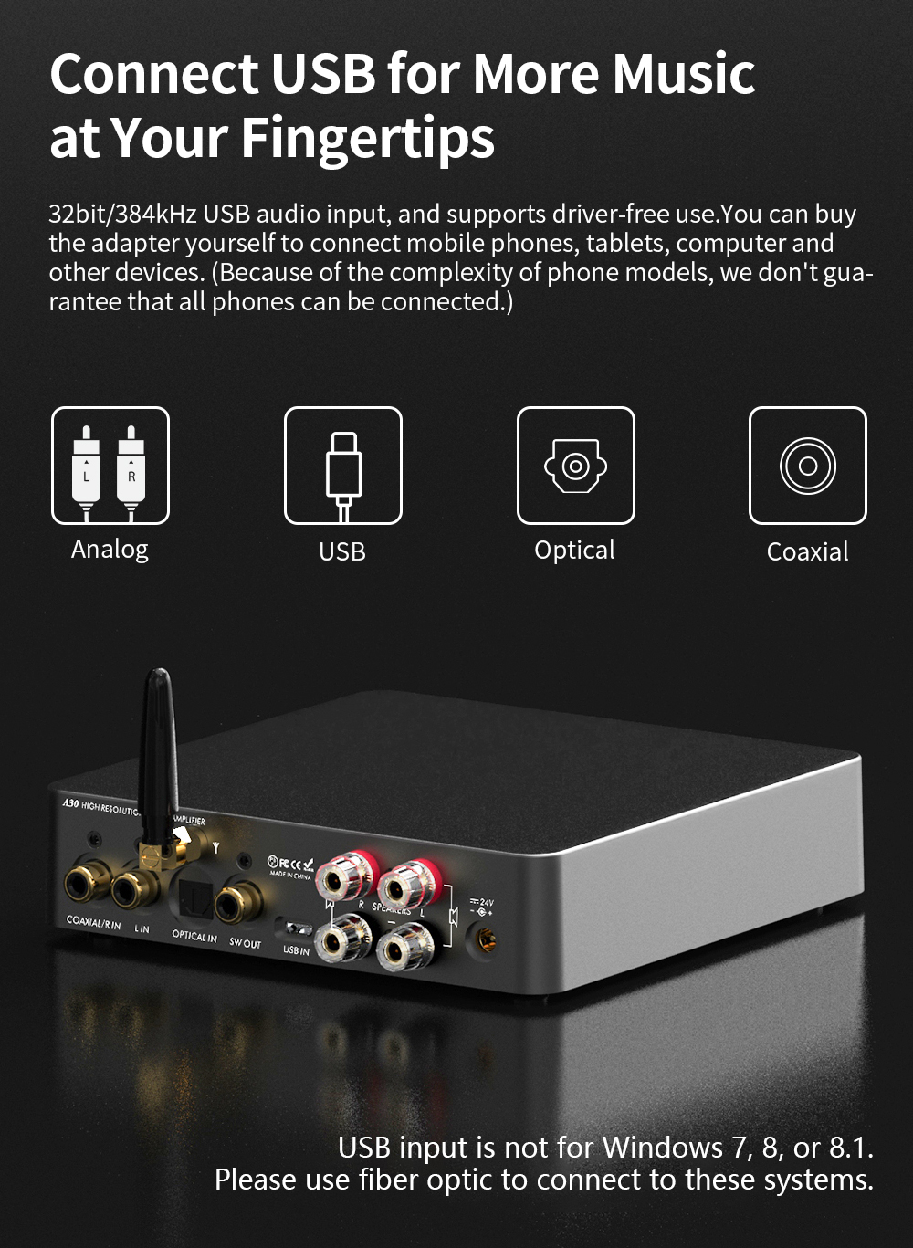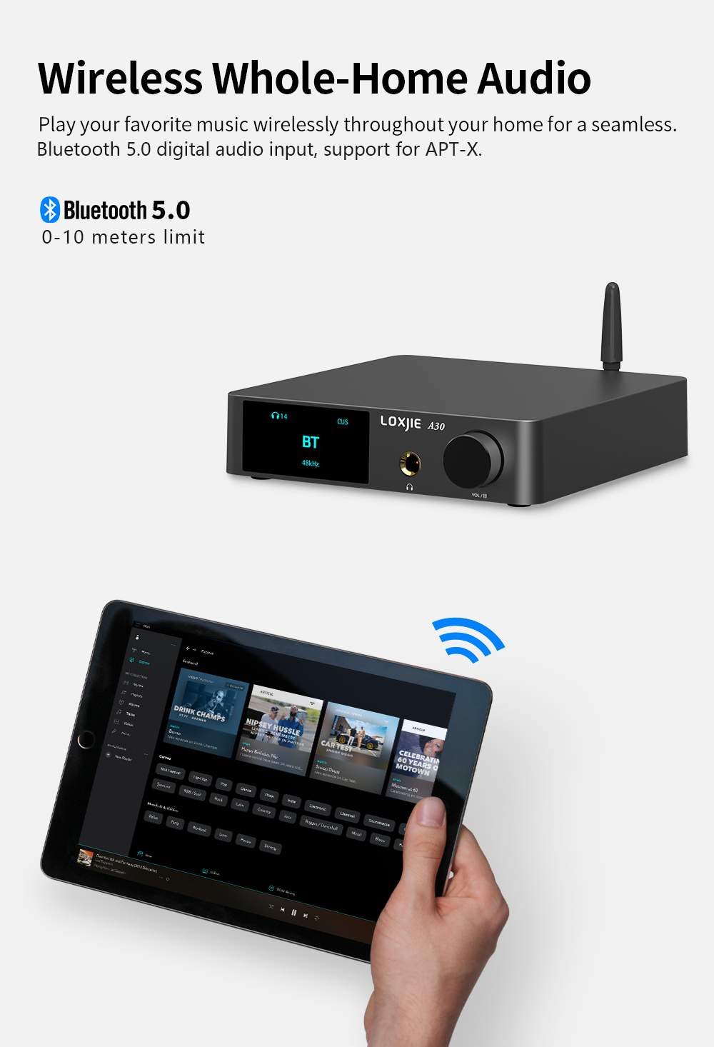 LOXJIE A30 Bluetooth DAC Decoder Headphone Amplifier 80Wx2 Hifi Power Amplifier USB Optical Coaxial