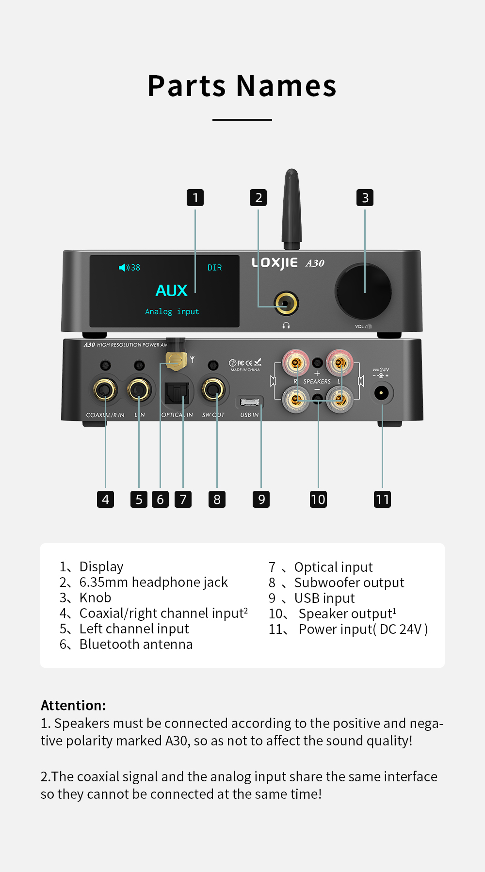 - Input mode: USB, Optical, Coaxial, Analog (RCA), Bluetooth