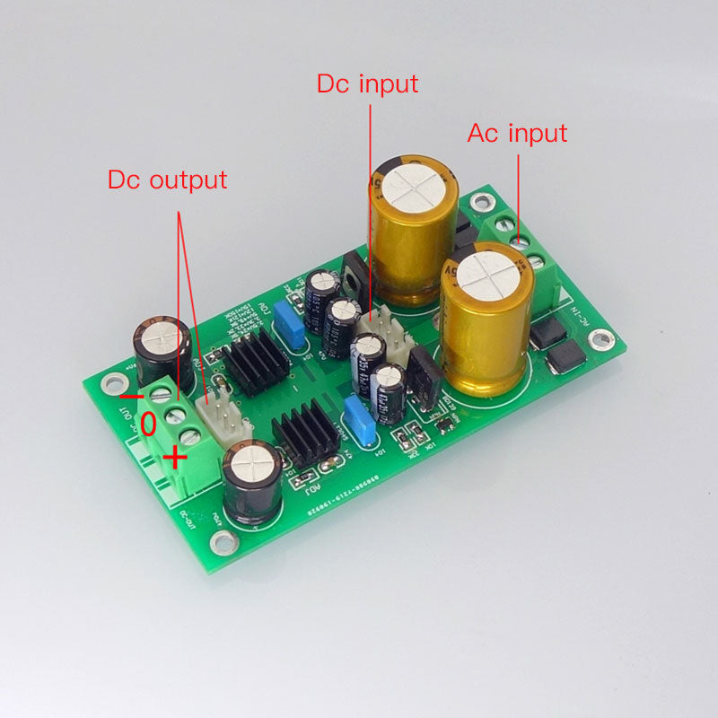 This product can provide DC regulated power supply close to zero noise. It can provide pure power for high-precision measuring instruments, audio decoders, preamps, amps and other equipment. High-end linear regulator chips LT3045 and LT3094 are used. Its noise index is lower than that of LT3042, and the noise voltage is as low as 1uV, which is 2-3 levels lower than the regulated noise of LM317 and LM337. The effect is very good, allowing your audio equipment to achieve a dark background. Output current 500mA make it fit general DAC chips and operational amplifiers, such as OPA2604, one piece of which is about 10mA.
