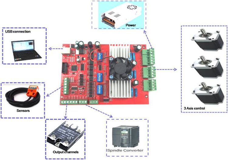 1. Support for 3-axis linkage, you can connect four stepper motor drives or servo drives.