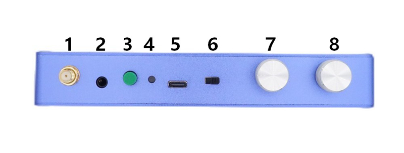 5. TYPE-C port: for charging and USB communication. Connect the SDR radio to a computer to use with software for HDSDR.