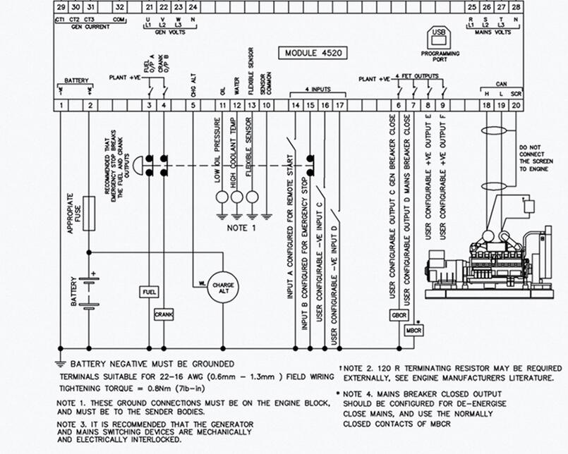 -The DSE4500 series module has been designed to allow the operator to start and stop the generator, and if required, transfer the load to the generator automatically. Additionally, the DSE4520 automatically starts and stops the generator set depending upon the status of the mains (utility) supply. The user also has the facility to view the system operating parameters via the LCD display.