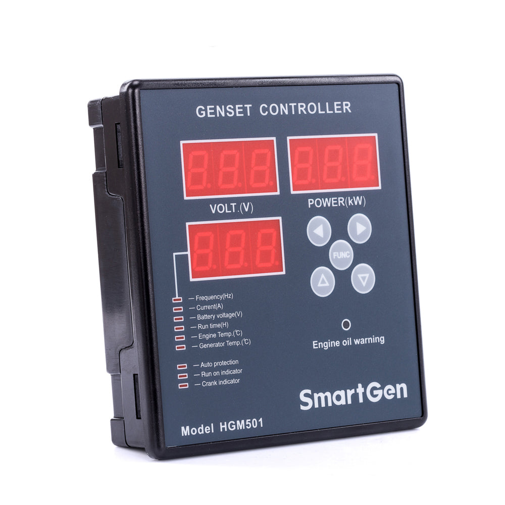 HGM501 gen-set controller is smart digital controller for control and protection of single-engine gen-sets. It can carry out start/stop, data measurement, alarm indication, shutdown protection and other functions. The controller is fitted with LED indicators; it is reliable and easy to use.