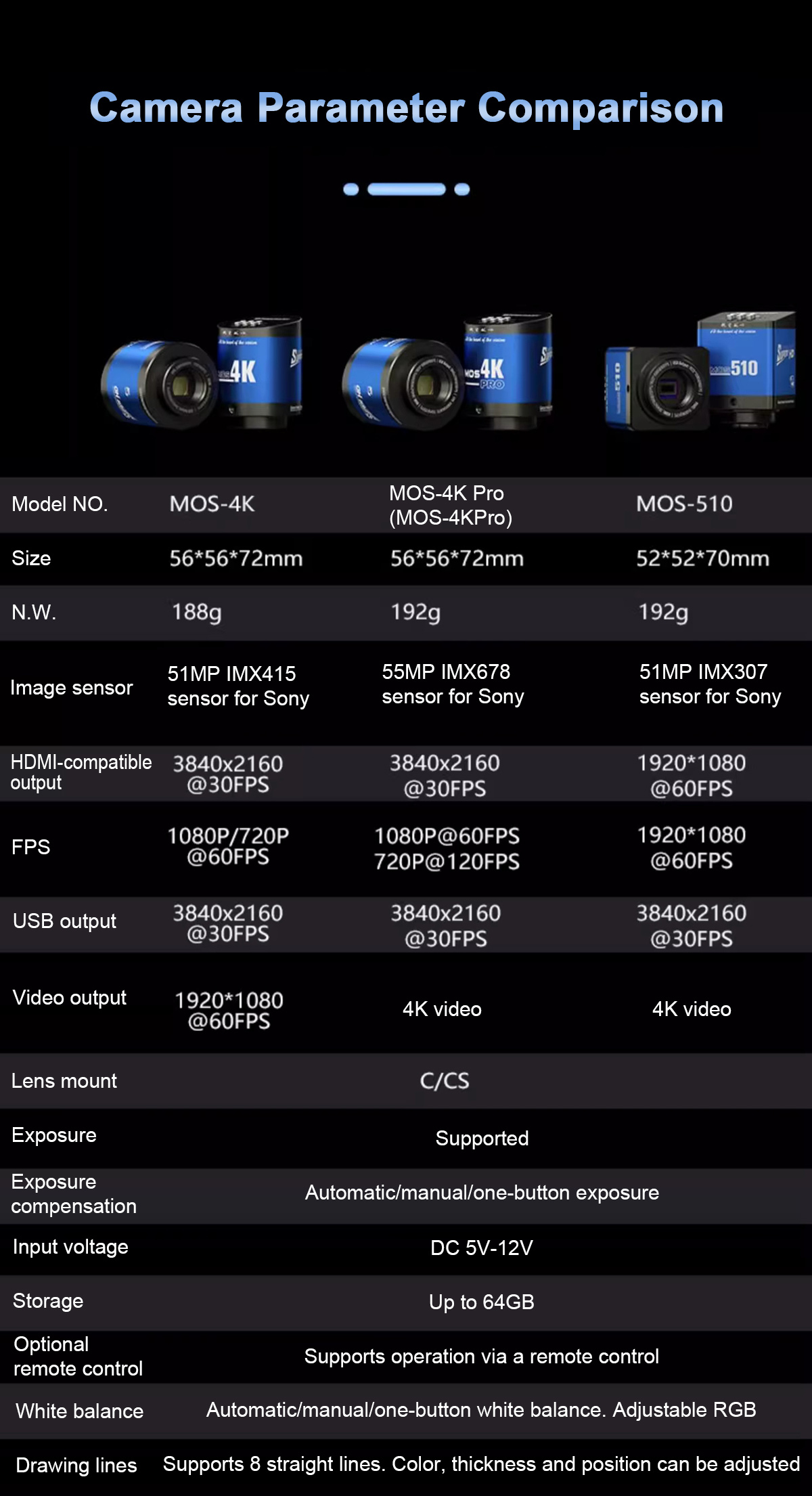 - 4K microscope camera: It supports 4K/25fps shooting, reproducing the true colors of the world.