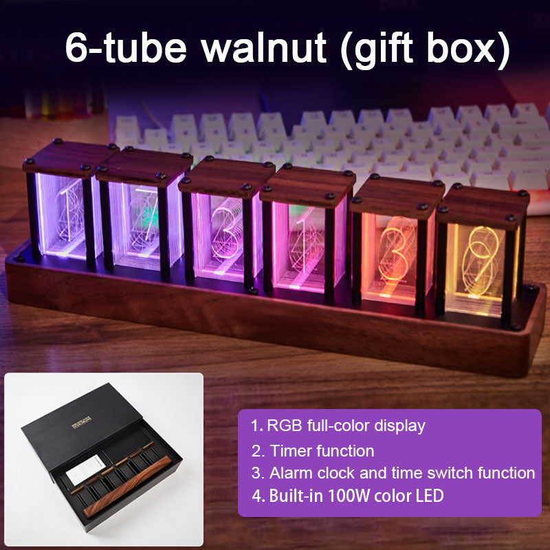 Medium-Sized RGB Pseudo Glow Tube Clock E-sports Digital Clock Alarm Imported Chip Walnut