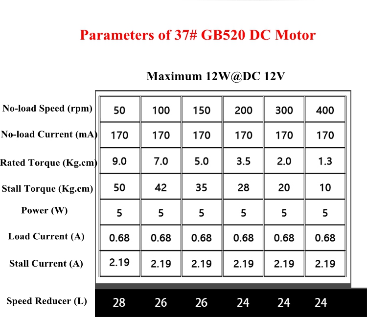 - Motor: 37# GB520 DC Motor without Hall Encoder