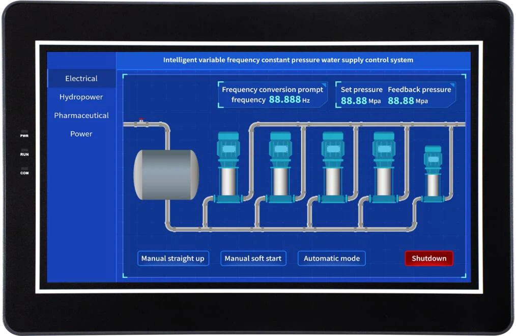As a HMI product, 10.1" IoT HMI has good basic performance in terms of clarity, startup speed, environmental tolerance, and the most core connection control capability. Its 4.3" compact structure, with resolution up to 1024x600, 0.5 seconds startup, and protection level up to IP65. It can adapt to -20 degrees to 55 degrees environment. In terms of connection, through various interfaces such as RS232, RS422/485, Ethernet, etc., corresponding to multiple protocols, it can be easily connected with various PLCs, and PLCs of different manufacturers can be manipulated through one HMI.
