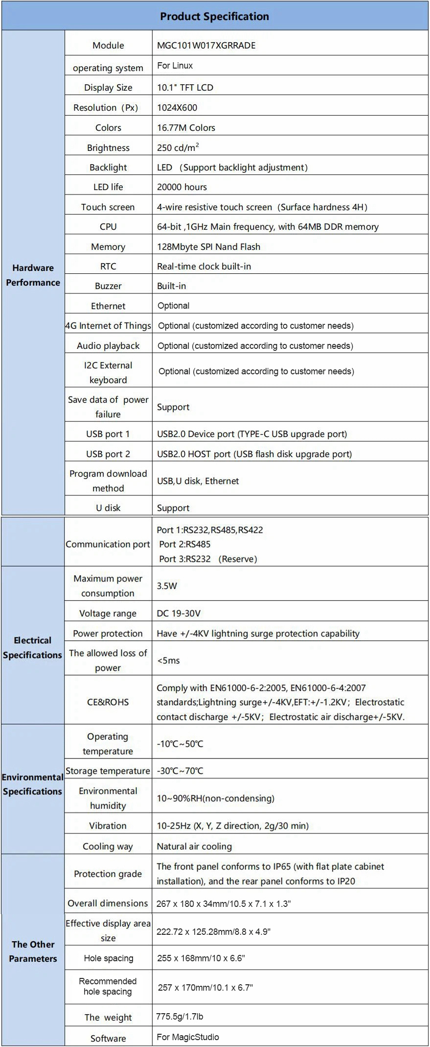 MGC 10.1 Inch HMI Display Screen Touch Screen (Dual Serial + Ethernet Port) for IoT Industrial PLC