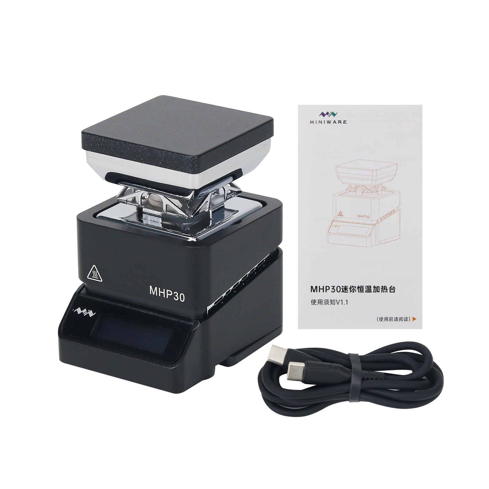 MINIWARE MHP30 Mini Hot Plate Preheater is an ultra-mini smart constant temperature hot plate (heating station). It eliminates redundancy, retains sufficient effective heating area, greatly saves energy and heating time. MHP30 condenses the large desktop heating station into pocket size. Used with a popular PD power supply, MHP30 turns out to be a portable tool kit.