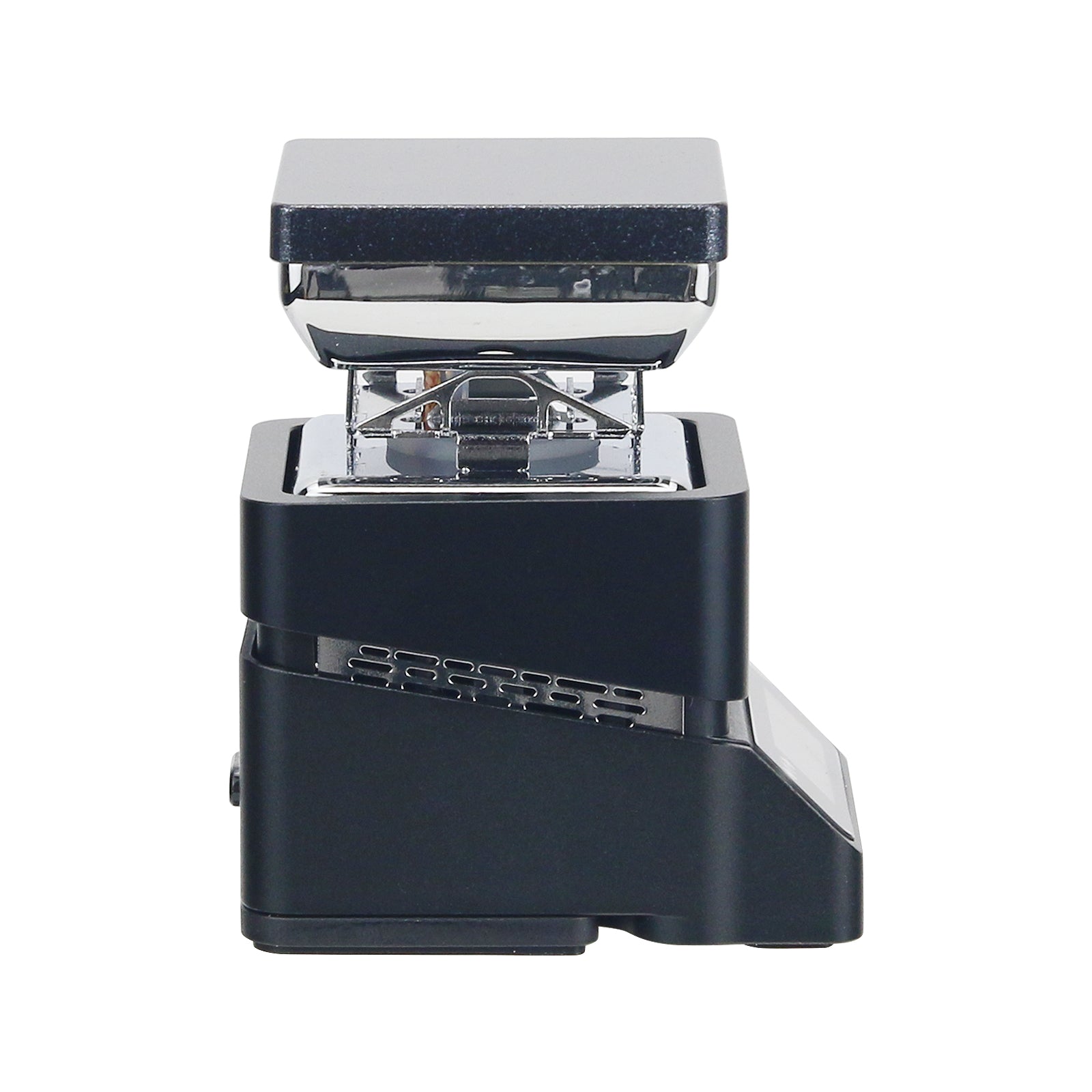 It is small and exquisite, in the shape of a square tower, and the total height is only 5.2cm (2 inches). The main body adopts a split design, and the control terminal and the heating element can be flexibly separated and replaced. The console is equipped with an OLED display and two physical buttons (on the back). The bottom is equipped with expandable supporting feet, which makes the whole body more stable and reliable when standing on a flat surface. The heating part of the heating body is made of brass plated with nano-ceramic coating, with a smooth surface and uniform heating. The stainless steel hollow bracket connects the heating part with the circuit board, and directly inserts it into the control end through the pin.