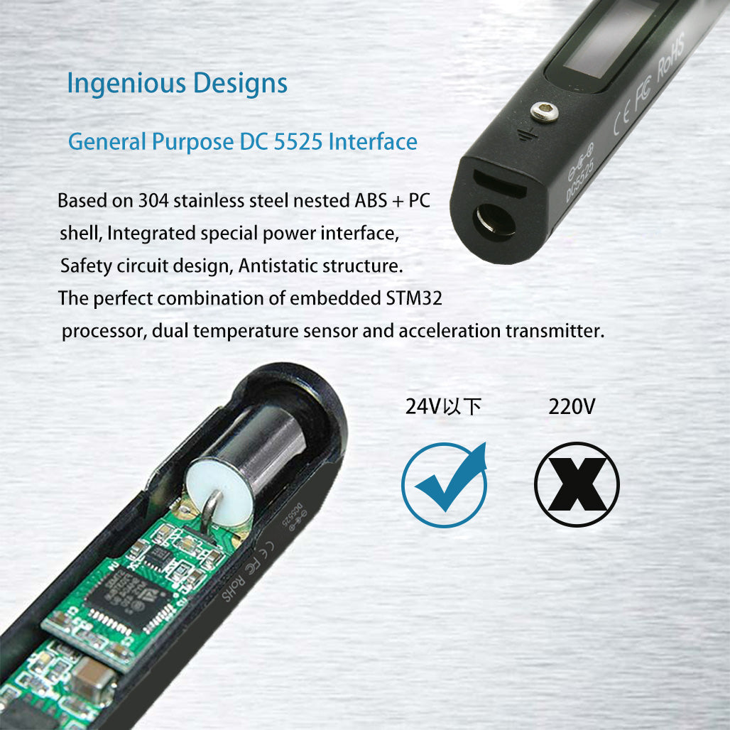 Made from 304 stainless steel nested ABS+PC shell, it is comfortable to touch and more suitable for humanization. Burning and upgrading firmware makes it achieve intelligent temperature control between 100℃ and 400℃, and the temperature is more stable. For users to have a better experience.