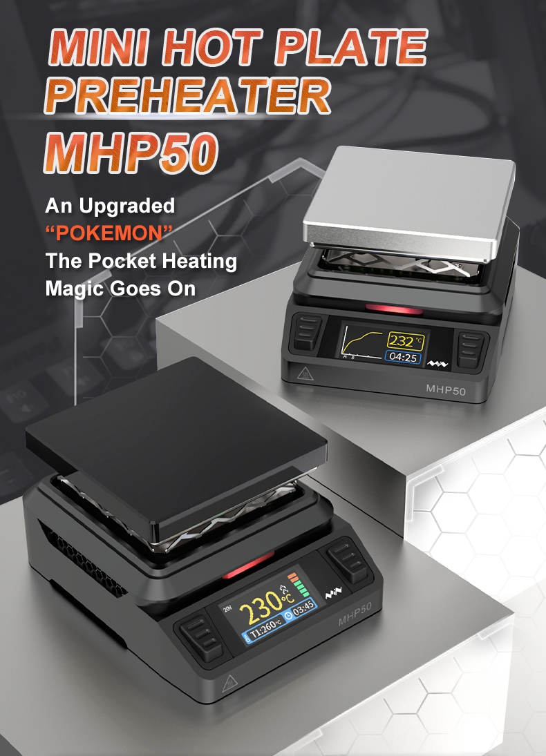 - Use scenarios: MHP50 Mini Hot Plate Preheater can be put into your pocket, for preheating, desoldering circuit boards, components, LED lamp beads, etc.