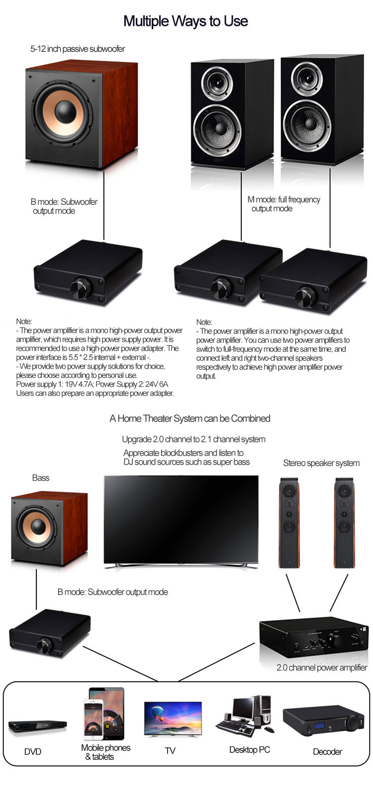 Mono Power Amplifier Subwoofer Power Amplifier 2.0 Channel to 2.1 For Home Theater (19V Power Supply)