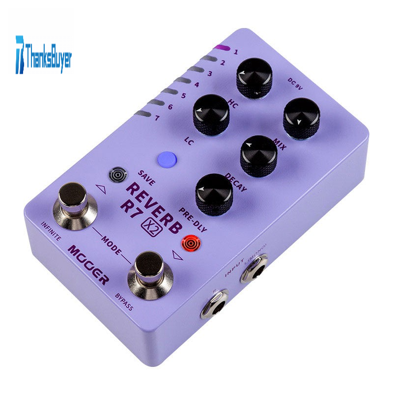 - The R7 X2 double-pedal stud stereo reverb monoblock perfectly combines the world-renowned new mini-series R7 and A7 into one. There are 14 stereo reverbs that are distinguished from classic to modern. In terms of adjustment, in addition to the commonly used dry-wet mixing ratio (Mix), attenuation (Decay), and pre-delay (Pre-Delay), it also provides two options of high-cut HI CUT and LO CUT low-cut. Users can choose according to their own Like to adjust the muddy or clean stereo reverb sound.