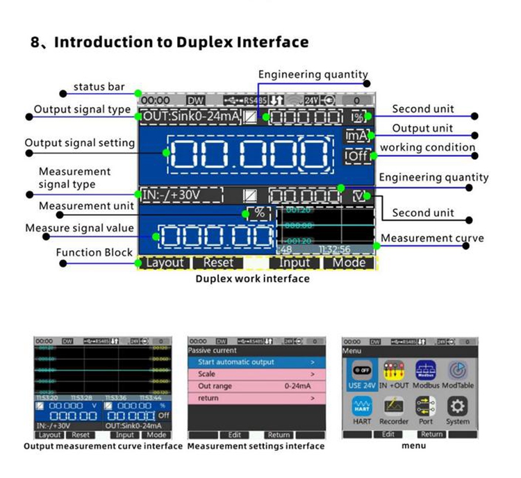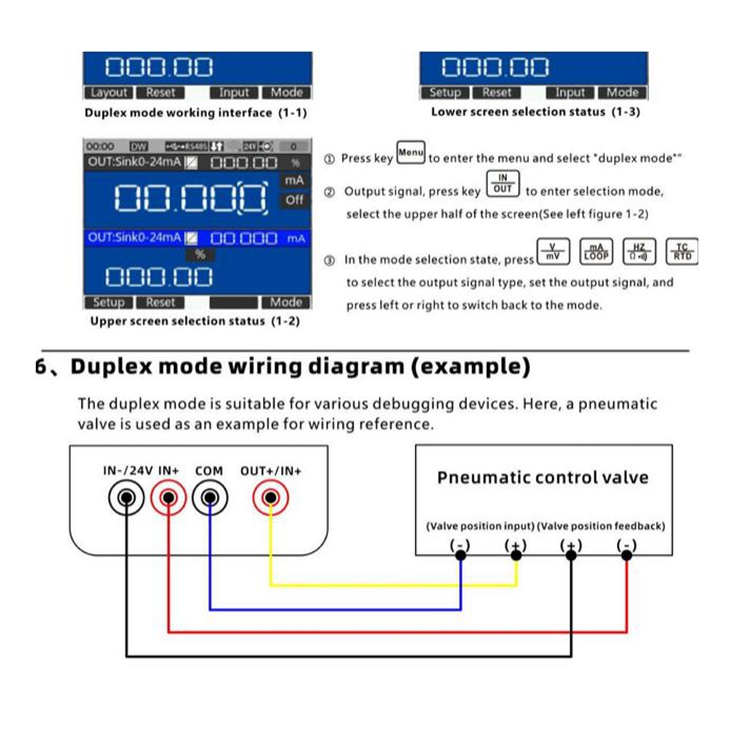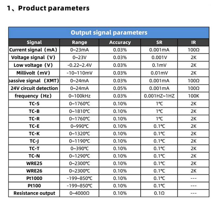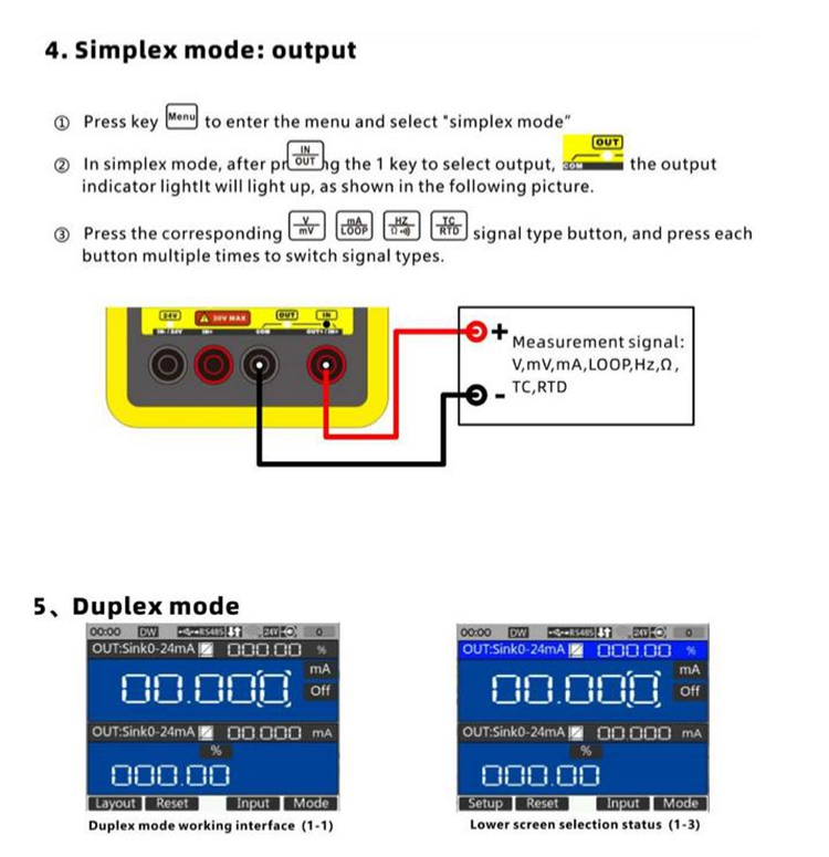 - This product is a multifunctional signal generator that can output various types of signals, including voltage, current, frequency, resistance, thermal resistance, thermocouple, etc. Among them, the most significant characteristic is simplex and duplex modes.