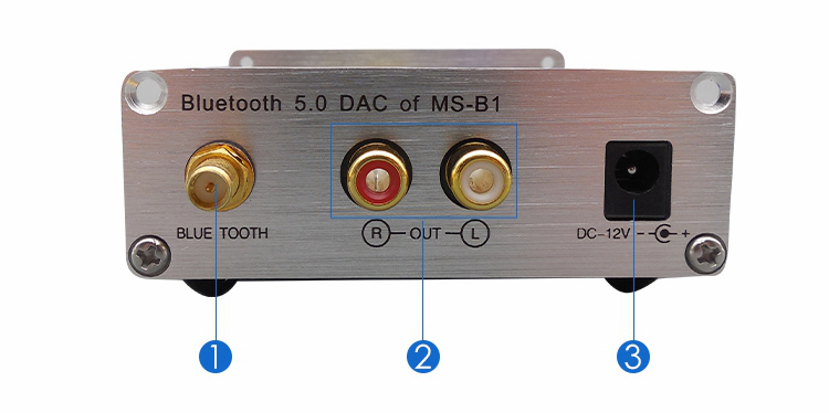 2. R-OUT-L: RCA analog output. (Connect power amps, active sound boxes, etc.)