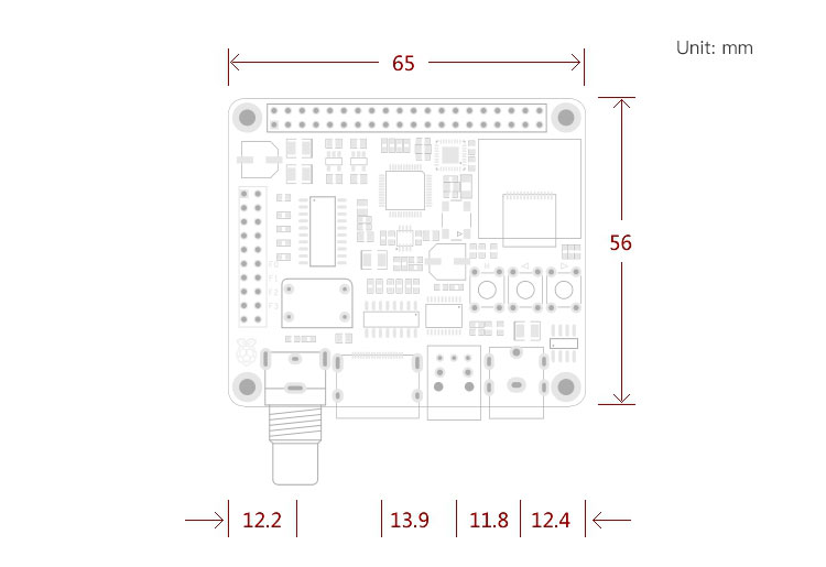 - Rated voltage: +5V (It can be powered by a motherboard for Raspberry Pi, or from the DC socket on the DAC board)