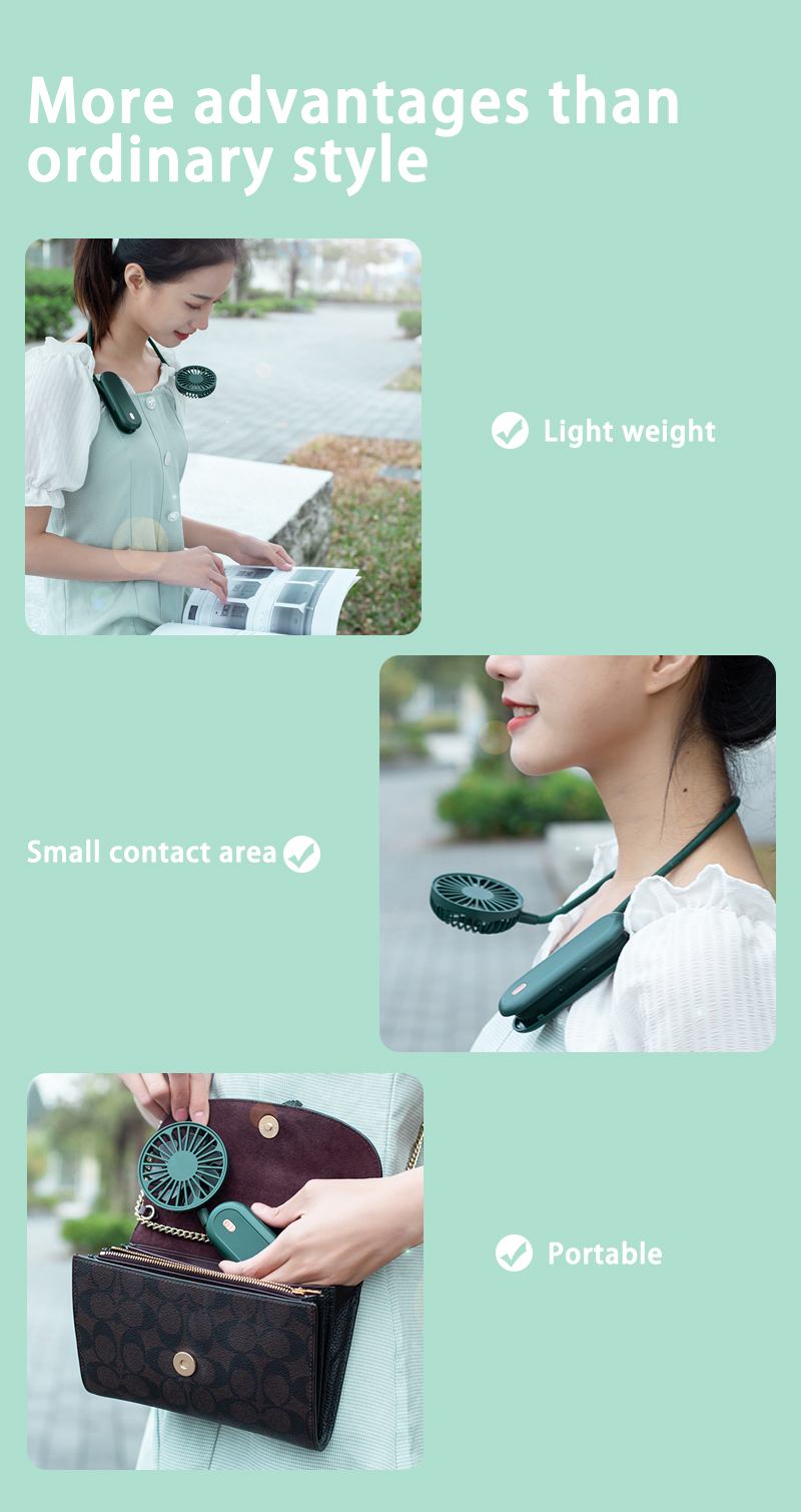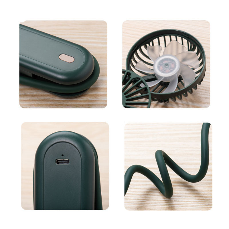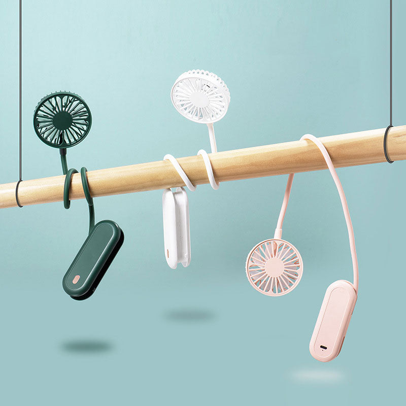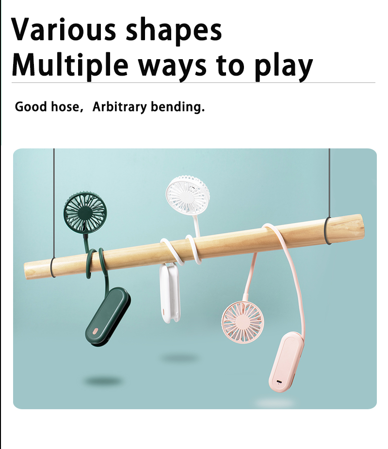 - The fan can be hung around the neck, wrapped around your bed, on the wrist, standing on the table, or hand-held