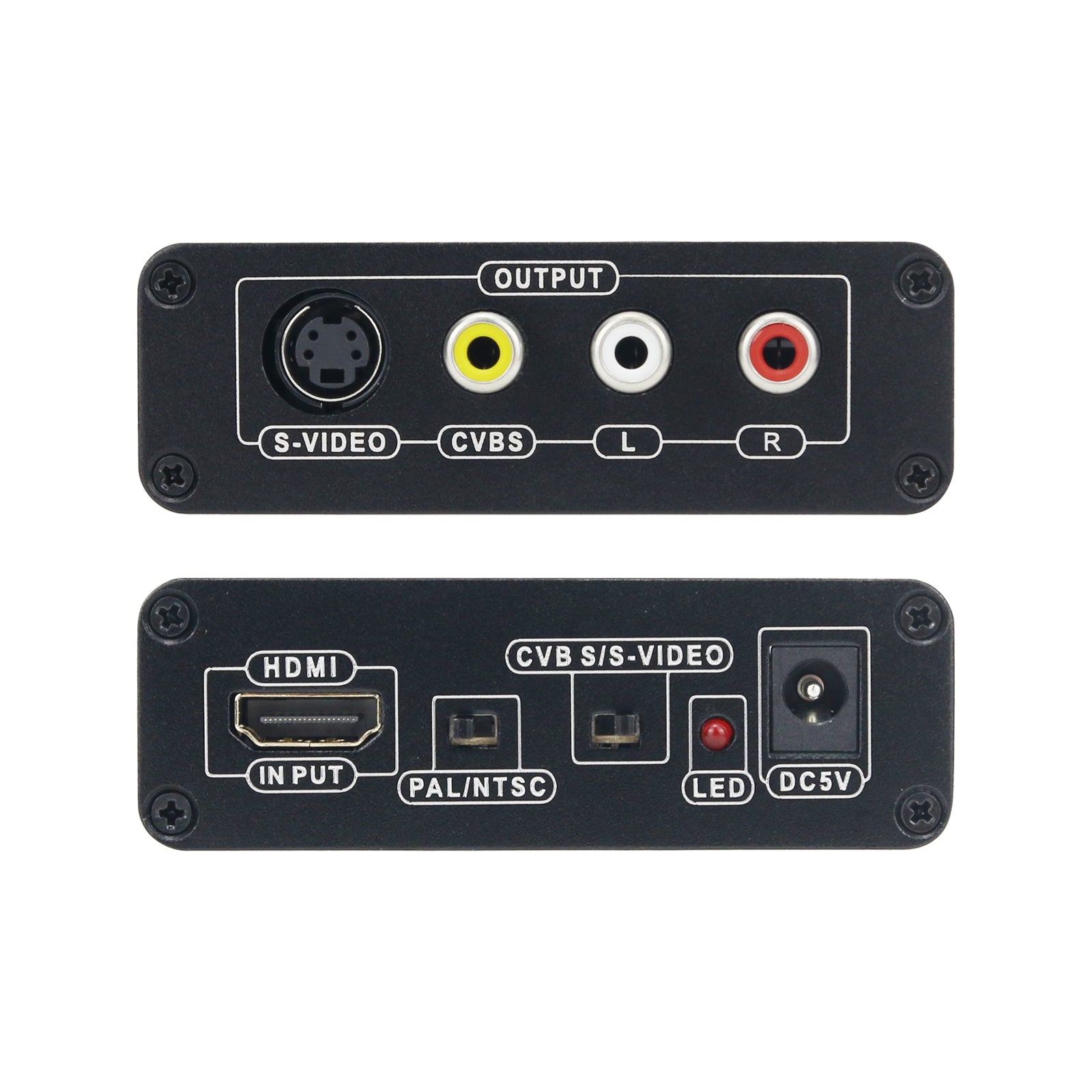This converter box is designed to convert HDMI to either Composite Video or S-Video. It allows the devices only equipped HDMI output to be connected to analog TV. It is mostly applied in AV equipment testing.